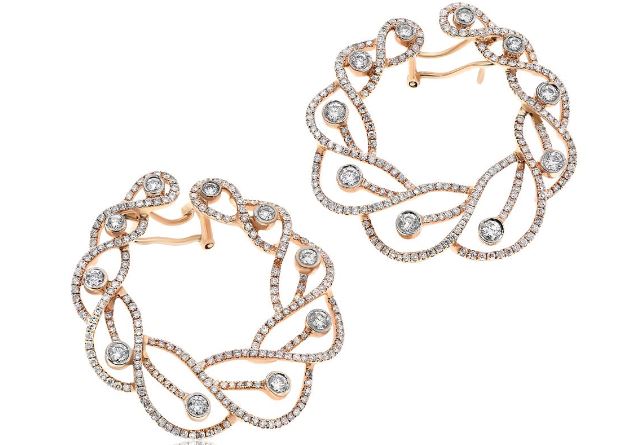 ESTATELARGE 18KT WHITEGOLD STUDEARRINGS. 3D CIRCULAR ETOILEDESIGN.DIAMONDS ARE F/G COLOR, VSSI CLARITY 3.30CARATS.WRITTEN APPRAISAL AVAILABLE. COMES IN A PRESENTABLE GIFT BOX.