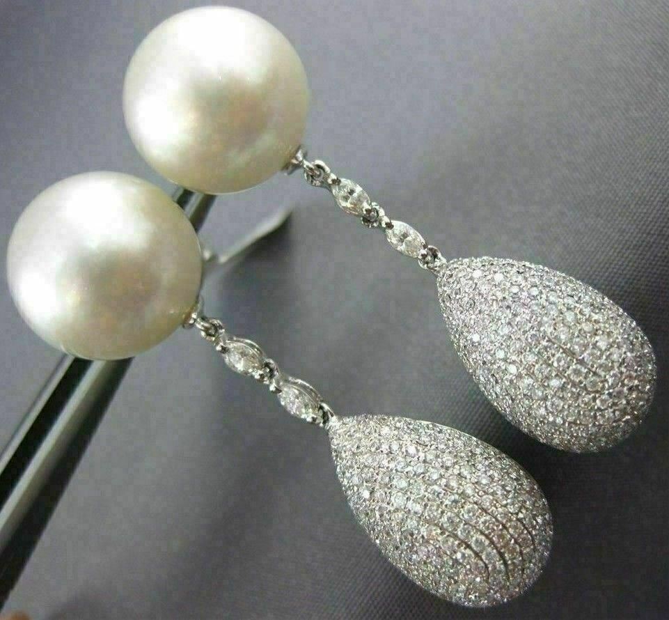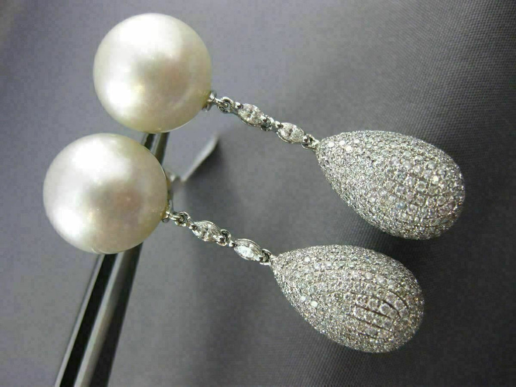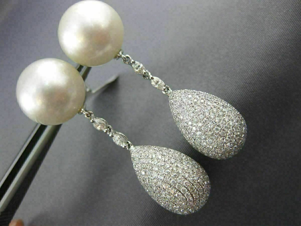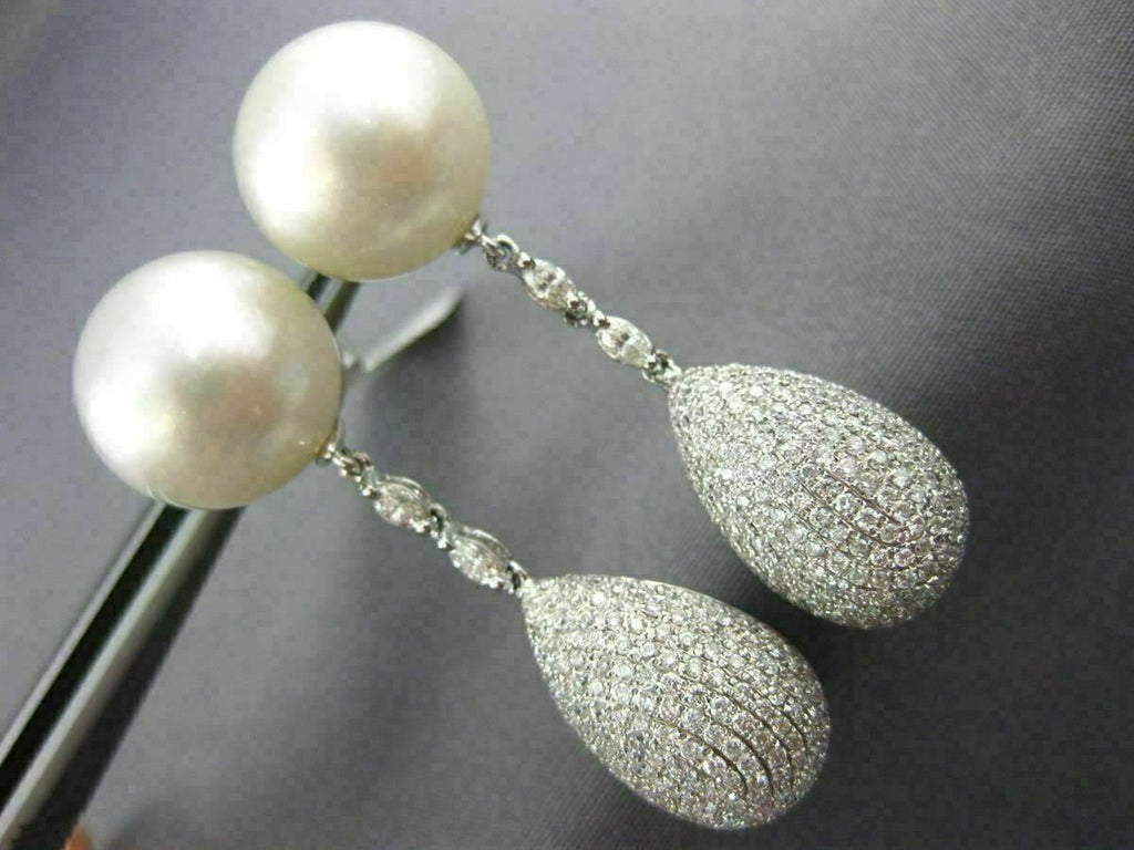 ESTATE LARGE 18KT WHITE GOLD EARRING. 3D DESIGN. DIAMONDS ARE F/G COLOR, VS CLARITY 3.40 CARATS. AAA SOUTH SEA PEARLS ARE 13mm WIDE. MEASURES 44mm X 13mm. WRITTEN APPRAISAL AVAILABLE. COMES IN A PRESENTABLE GIFT BOX. SERIOUS OFFERS CONSIDERED.