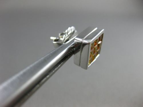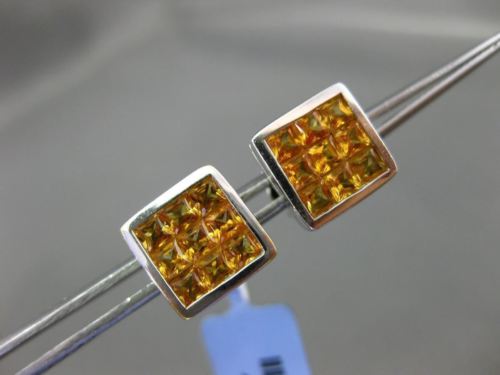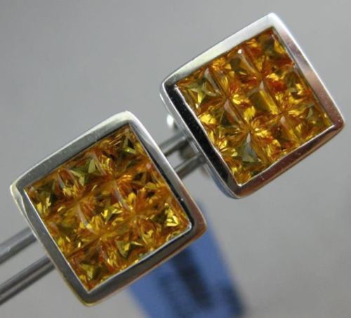 ESTATE LARGE 18KT WHITE GOLD STUD EARRINGS. 3D MULTI ROW SQUARE INVISIBLE DESIGN. AAA YELLOW SAPPHIRE ARE 3.43 CARATS. MEASURES 9mm WIDE. WRITTEN APPRAISAL AVAILABLE COMES IN A PRESENTABLE GIFT BOX.