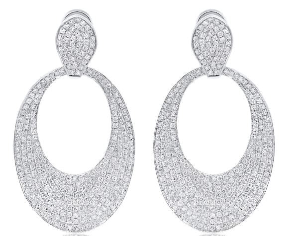 ESTATELARGE 18KT WHITEGOLD HANGING EARRINGS. 3D MULTI ROW OVALDESIGN.DIAMONDS ARE F/G COLOR, VSSI CLARITY 3.62CARATS.WRITTEN APPRAISAL AVAILABLE. COMES IN A PRESENTABLE GIFT BOX.
