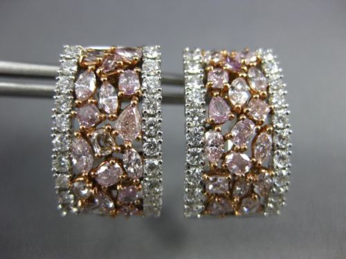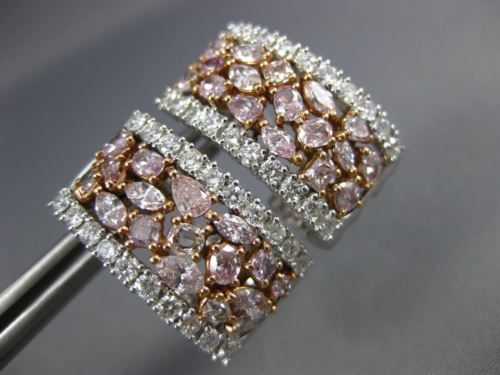 STATE LARGE 18KT WHITE AND ROSE GOLD CLIP ON EARRINGS. 3D MULTI SHAPE FILIGREE DESIGN. WHITE DIAMONDS ARE F/G COLOR, VS CLARITY 1.22 CARATS. PINK DIAMONDS ARE 2.41 CARATS. MEASURES 12mm X 21mm. WRITTEN APPRAISAL AVAILABLE. COMES IN A PRESENTABLE GIFT BOX.