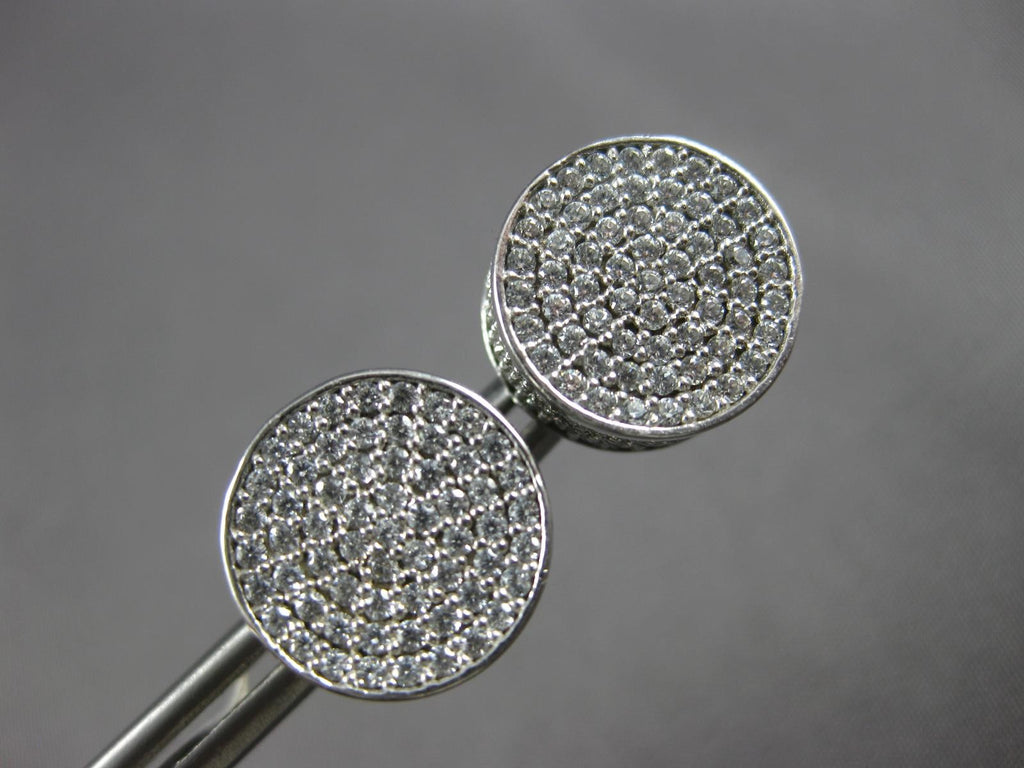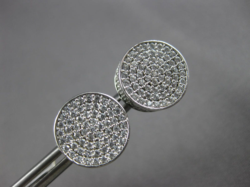 ESTATE LARGE 3.0CT DIAMOND 14KT WHITE GOLD CIRCULAR CLASSIC PAVE STUD EARRINGS