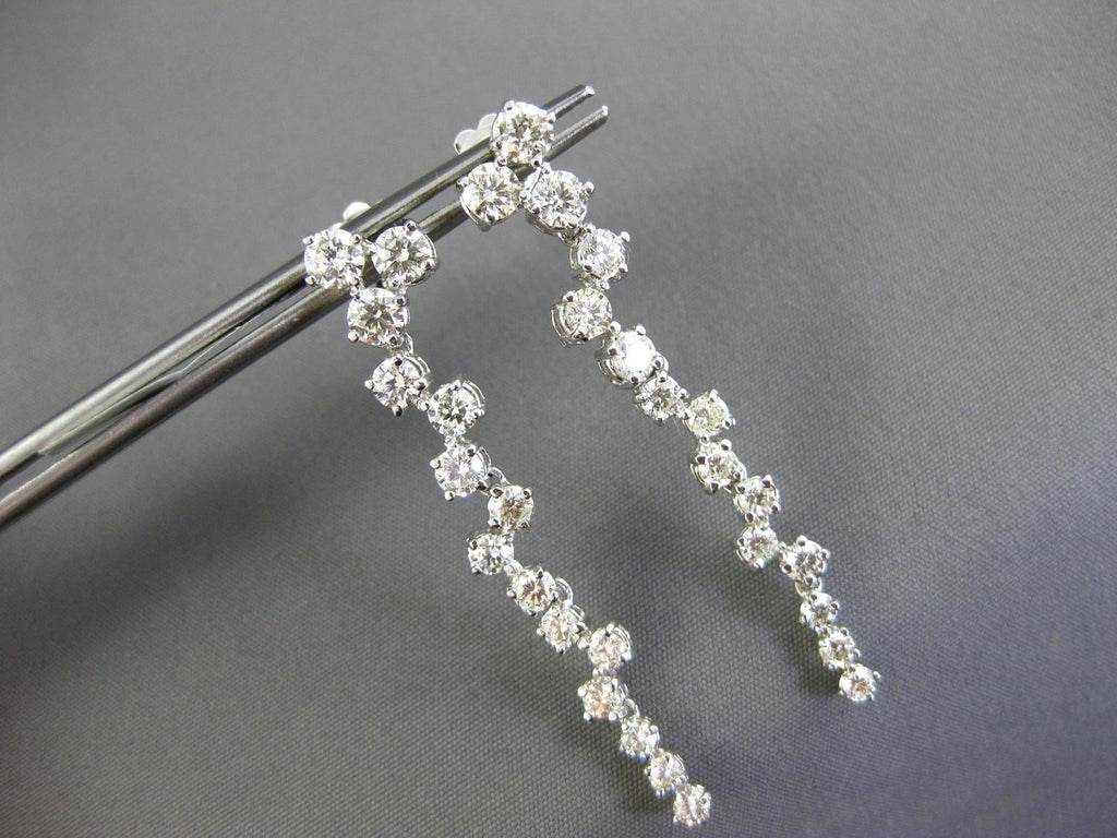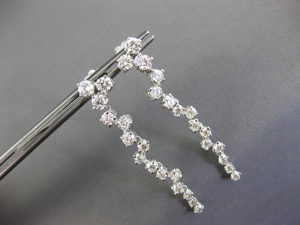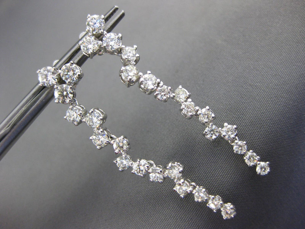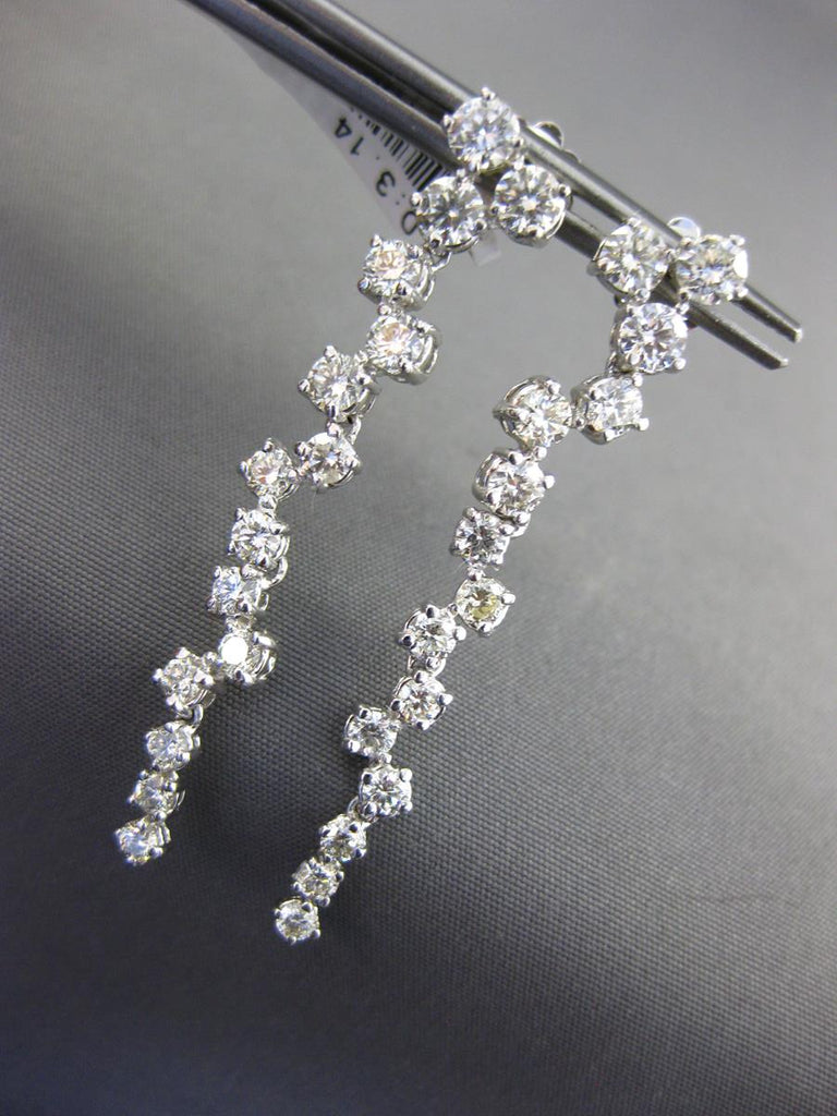 ESTATE LARGE 14KT WHITE GOLD FUN HANGING EARRINGS. 3D CLASSIC DESIGN. DIAMONDS ARE F/G COLOR, VSSI CLARITY 3.14 CARATS. MEASURES 44.5mm X 4.5mm. WRITTEN APPRAISAL AVAILABLE. COMES IN A PRESENTABLE GIFT BOX.