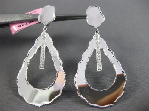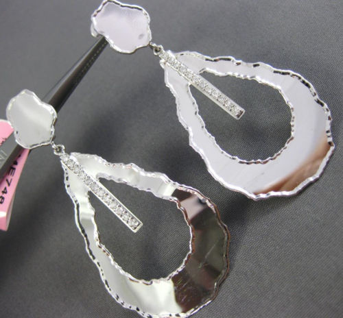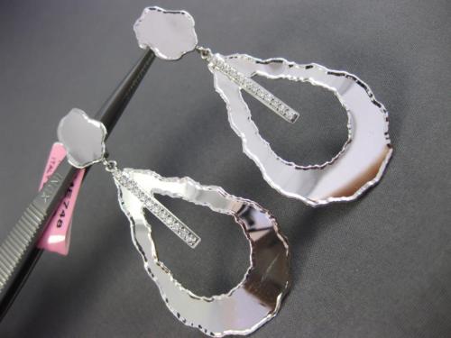 ESTATE LARGE 14KT WHITE GOLD HANGING EARRINGS. 3D TEAR DROP HAMMERED DESIGN. DIAMONDS ARE F/G COLOR, VSSI CLARITY .35 CARATS. MEASURES 54mm X 25mm. WRITTEN APPRAISAL AVAILABLE. COMES IN A PRESENTABLE GIFT BOX.