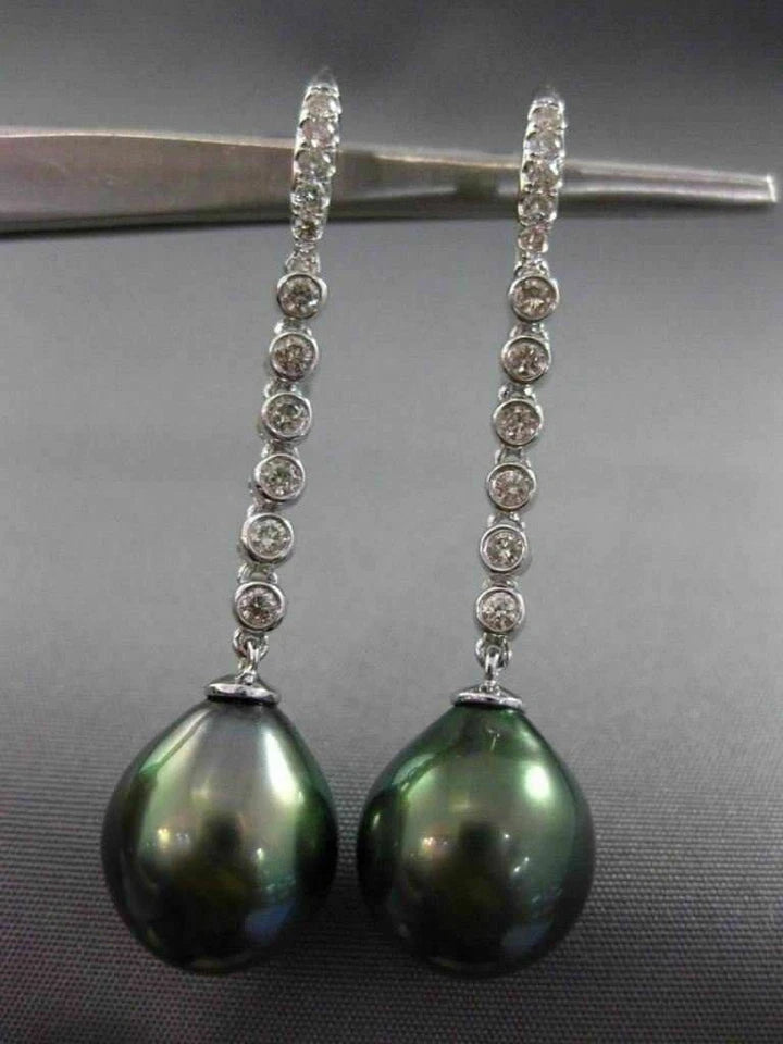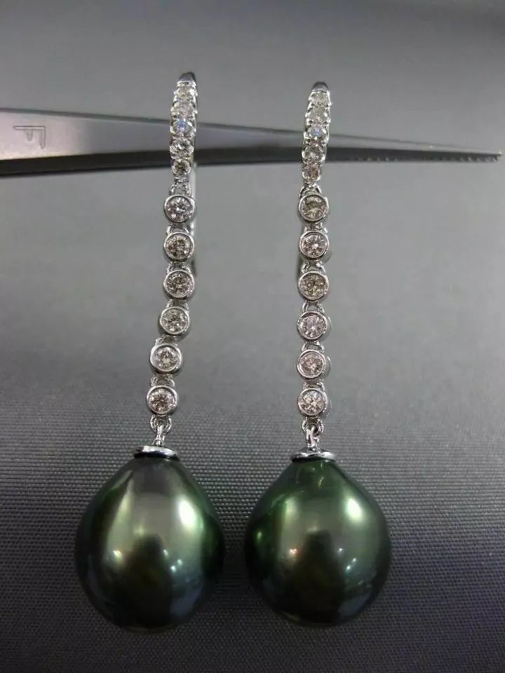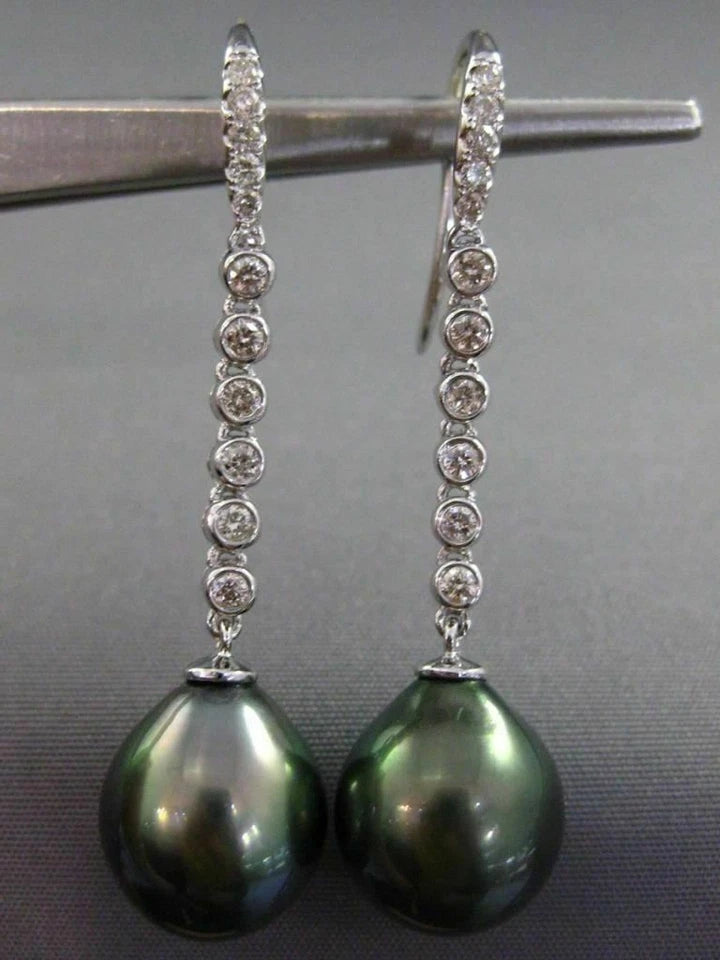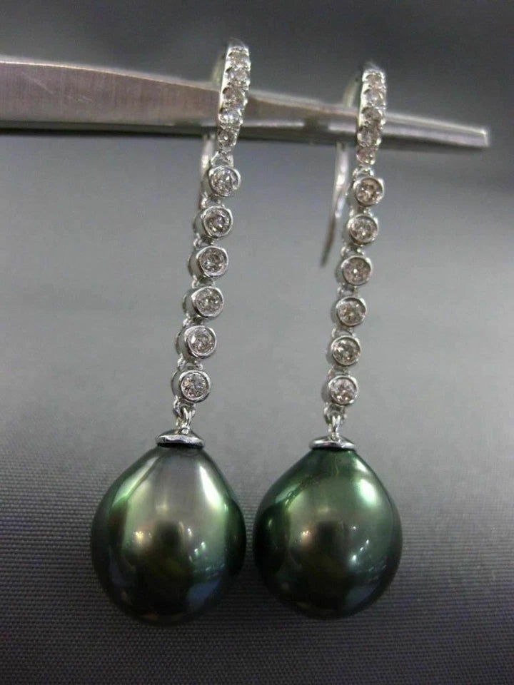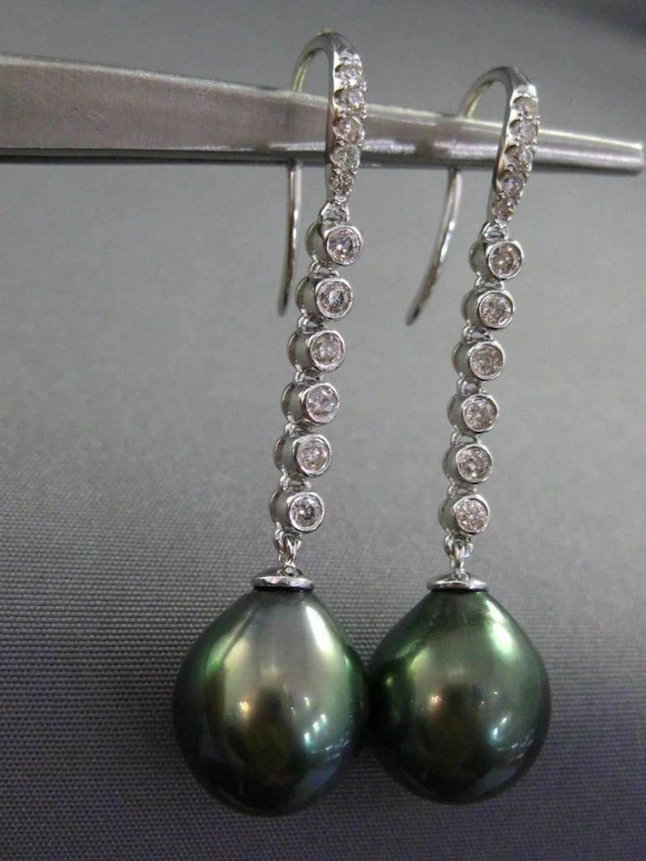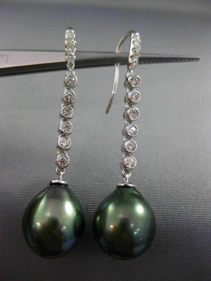ESTATE LARGE .36CT DIAMOND 18KT WHITE GOLD AAA TAHITIAN PEARL ELONGATED EARRINGS