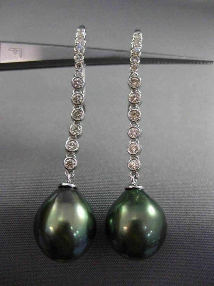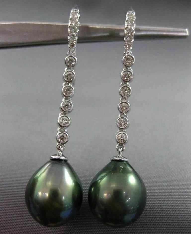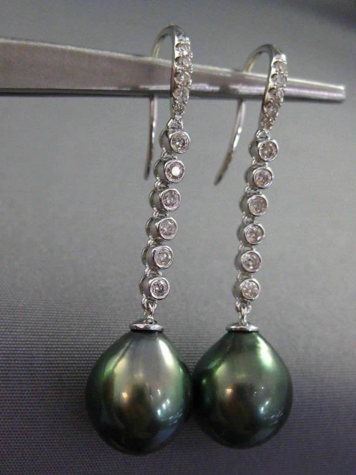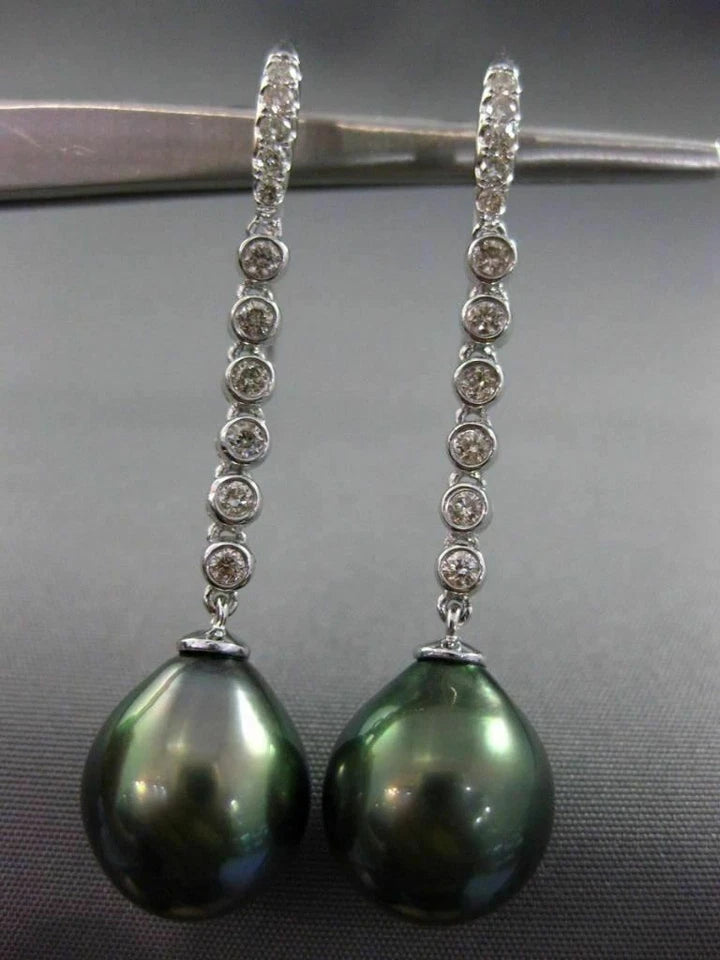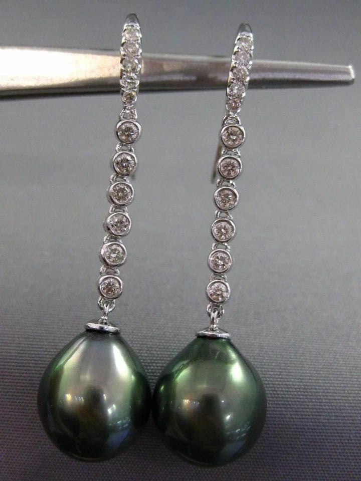 ESTATE LARGE .36CT DIAMOND 18KT WHITE GOLD AAA TAHITIAN PEARL ELONGATED EARRINGS
