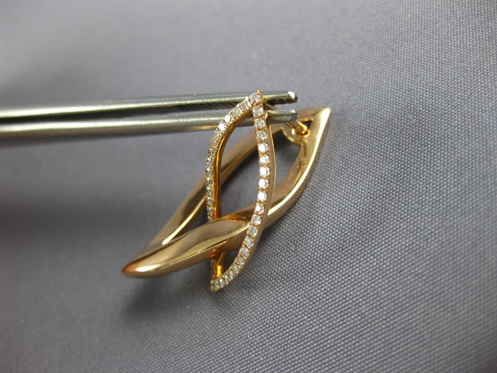 ESTATE LARGE .38CT DIAMOND 18KT ROSE GOLD 3D DOUBLE LEAF HUGGIE HANGING EARRINGS