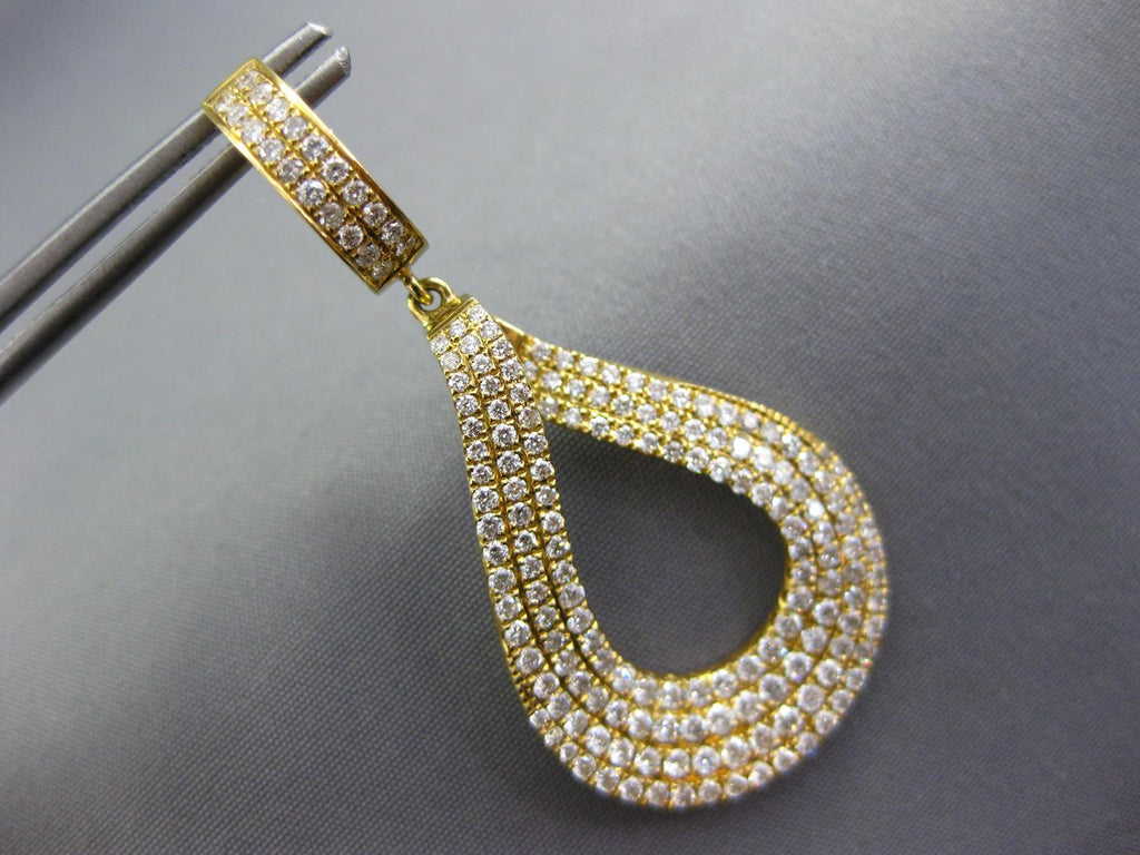 ESTATE LARGE 4.01CT DIAMOND 18K YELLOW GOLD MULTI ROW TEAR DROP HANGING EARRINGS