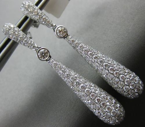 ESTATE LARGE 4.74CT DIAMOND 14KT WHITE GOLD 3D PAVE TEAR DROP HANGING EARRINGS