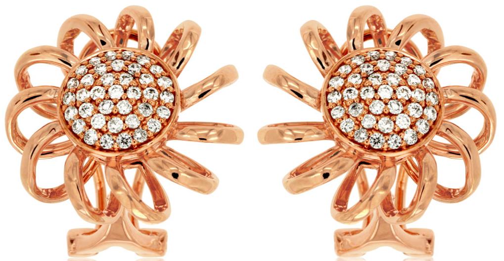 ESTATE LARGE 14KT ROSE GOLD FUN CLIP ON EARRINGS. 3D SUNFLOWER DESIGN. ROUND DIAMONDS ARE F/G COLOR, VSSI CLARITY .40 CARATS. WRITTEN APPRAISAL AVAILABLE. COMES IN A PRESENTABLE GIFT BOX.