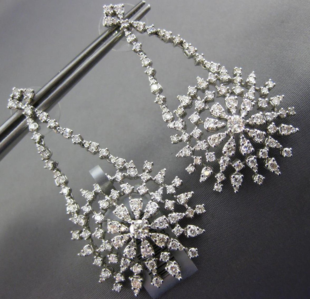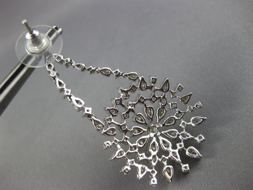 ESTATE LARGE 4.18CT DIAMOND 14KT WHITE GOLD 3D FLOWER SNOWFLAKE HANGING EARRINGS