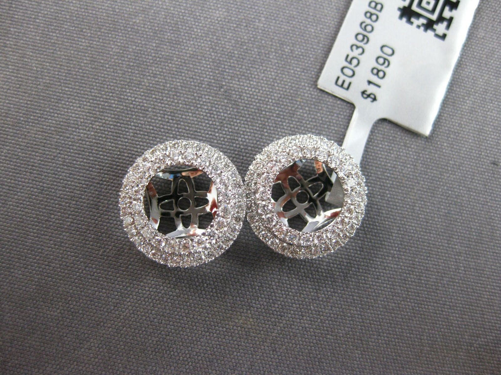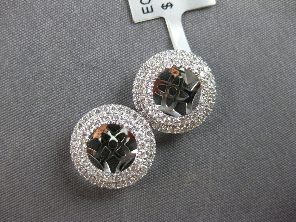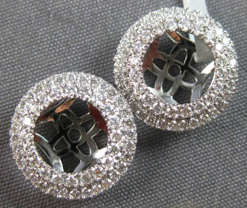 ESTATE LARGE .44CT DIAMOND 18K WHITE GOLD 3D CLASSIC DOUBLE HALO EARRING JACKETS