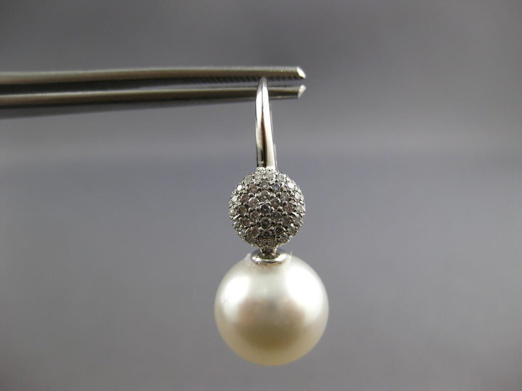 ESTATE LARGE .47CT DIAMOND & AAA SOUTH SEA PEARL 18K WHITE GOLD HANGING EARRINGS