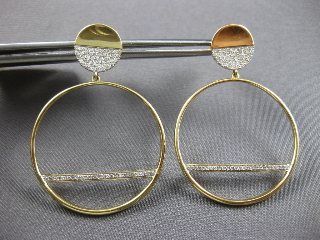 ESTATE LARGE .48CT DIAMOND 14KT YELLOW GOLD 3D CIRCULAR BAR FUN HANGING EARRINGS