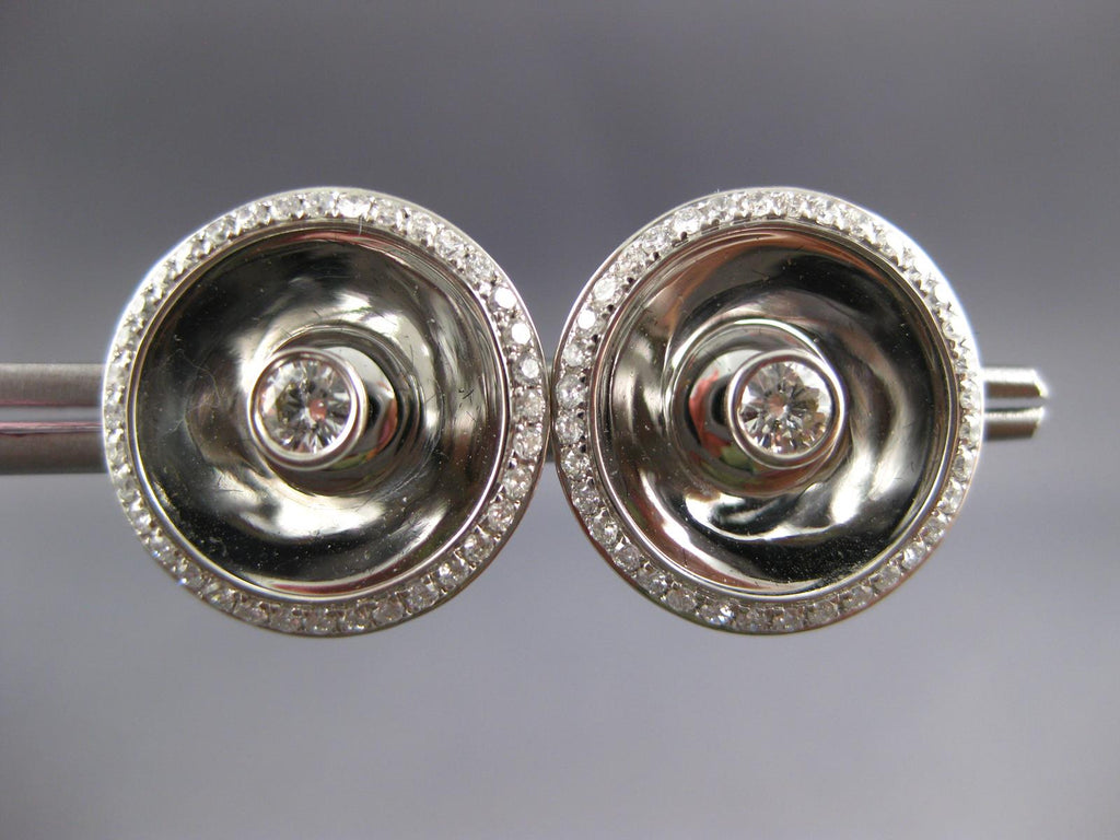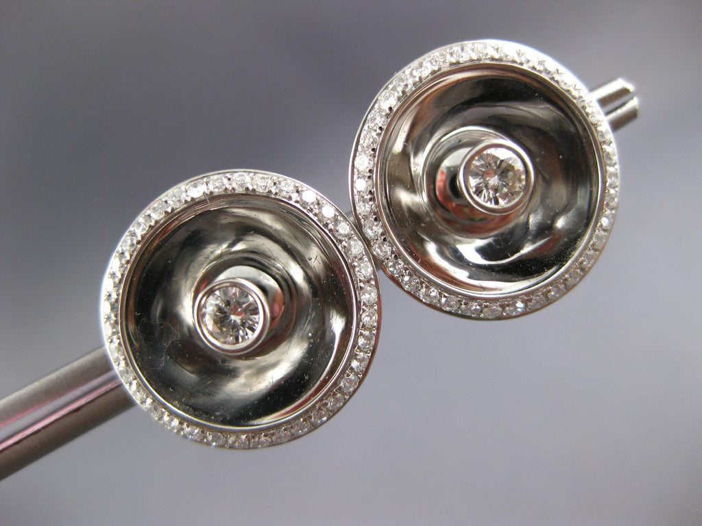 ESTATE LARGE .52CT DIAMOND 18KT WHITE GOLD 3D CLASSIC ROUND BUTTON STUD EARRINGS