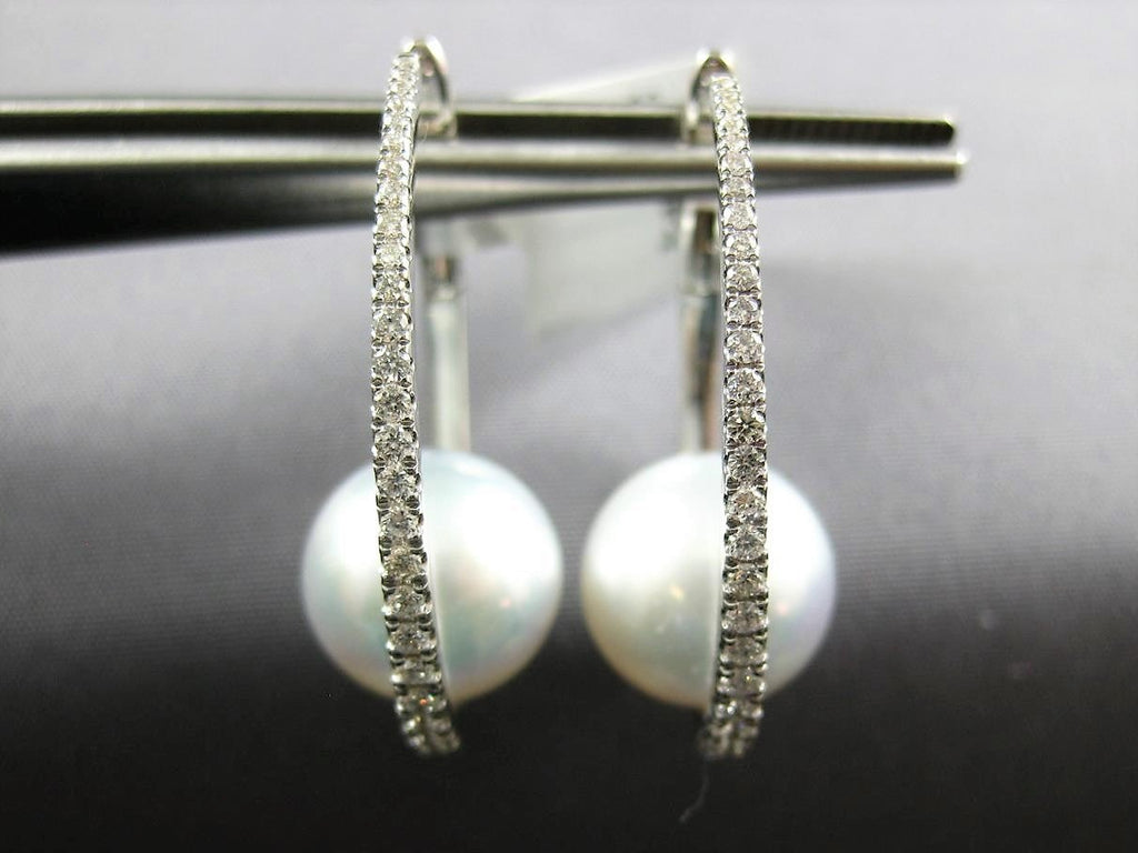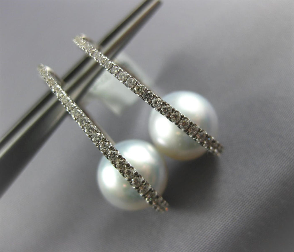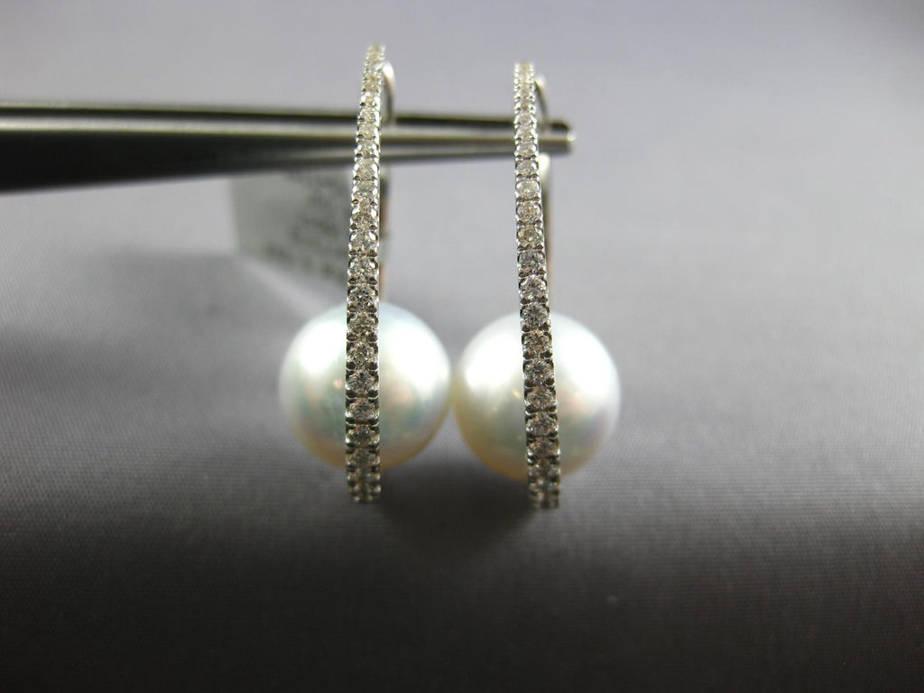 ESTATE LARGE .55CT DIAMOND & AAA SOUTH SEA PEARL 18K WHITE GOLD 3D HOOP EARRINGS