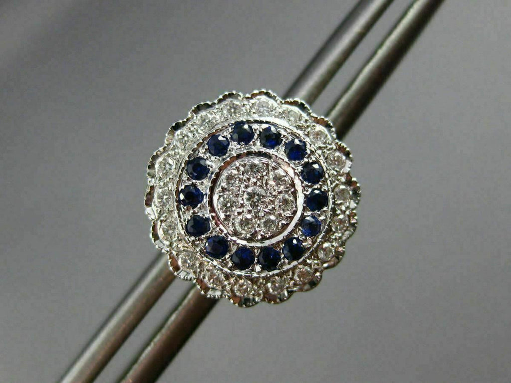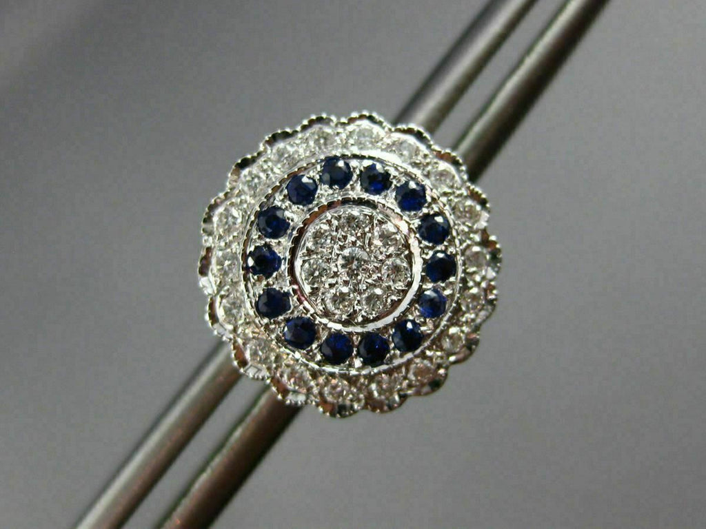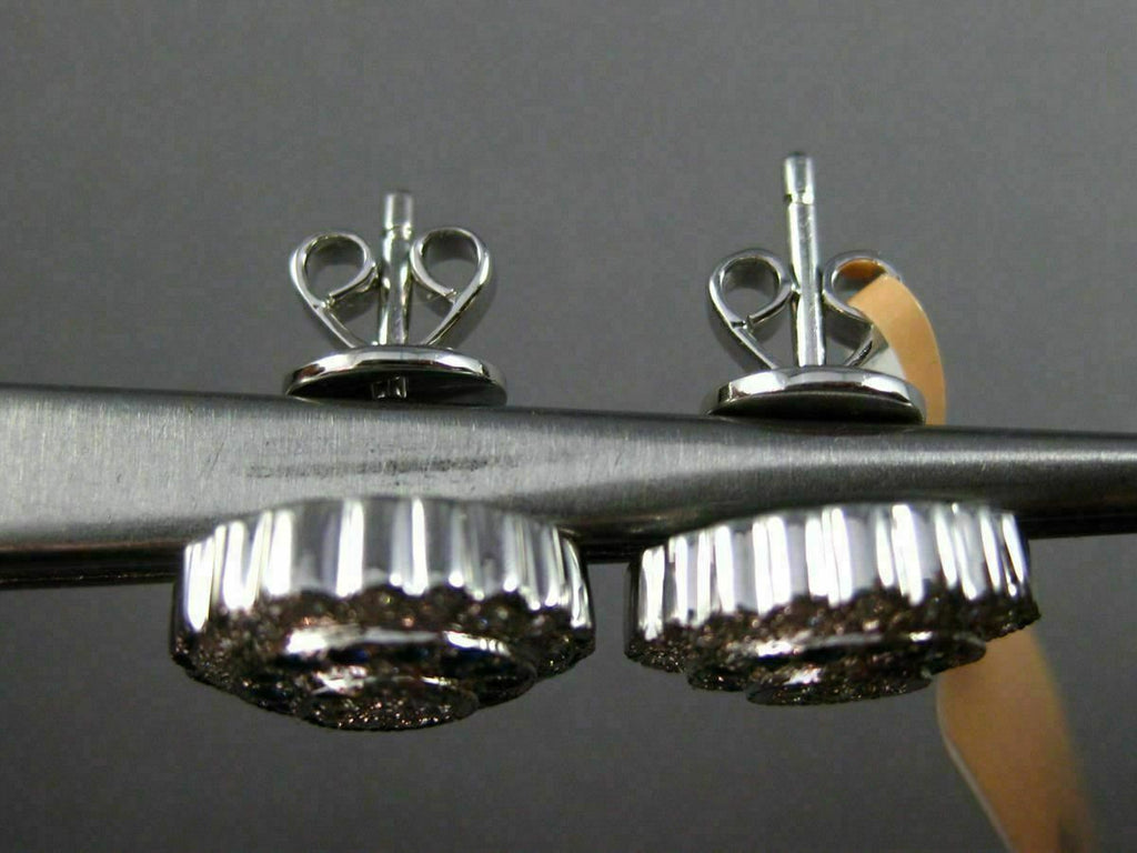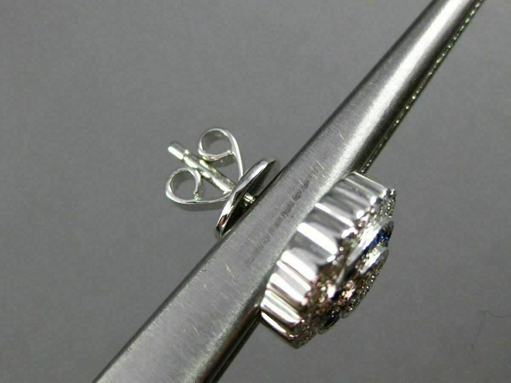 ESTATE LARGE .58CT DIAMOND SAPPHIRE 14K WHITE GOLD FLOWER MILGRAIN STUD EARRINGS