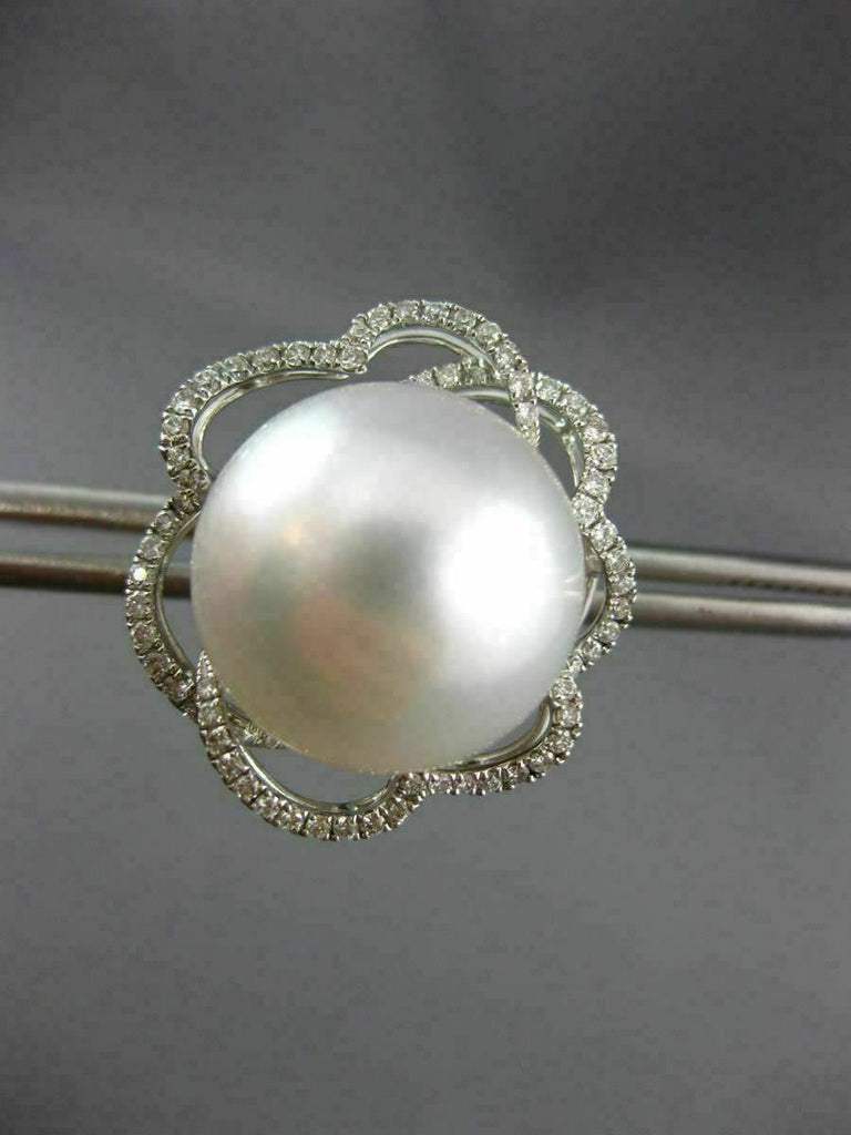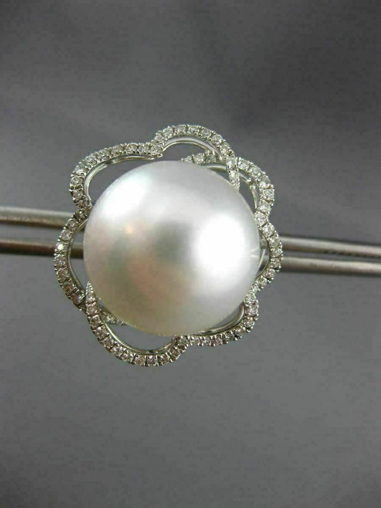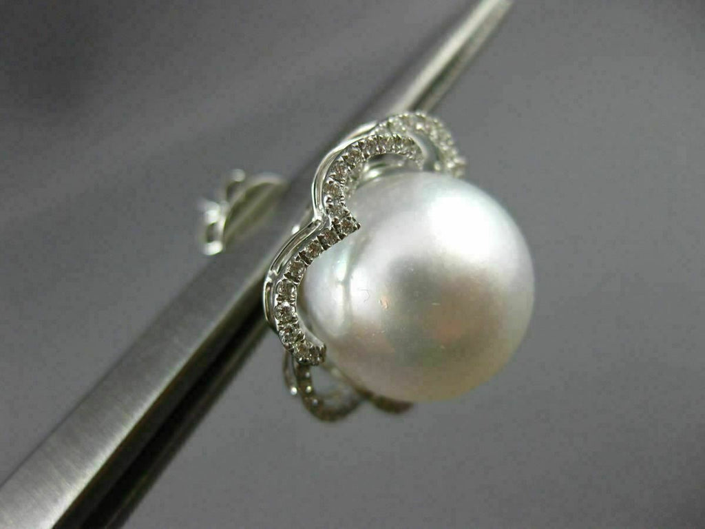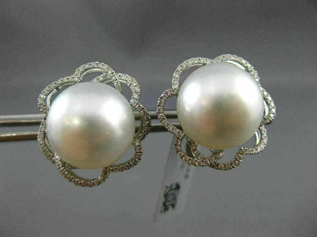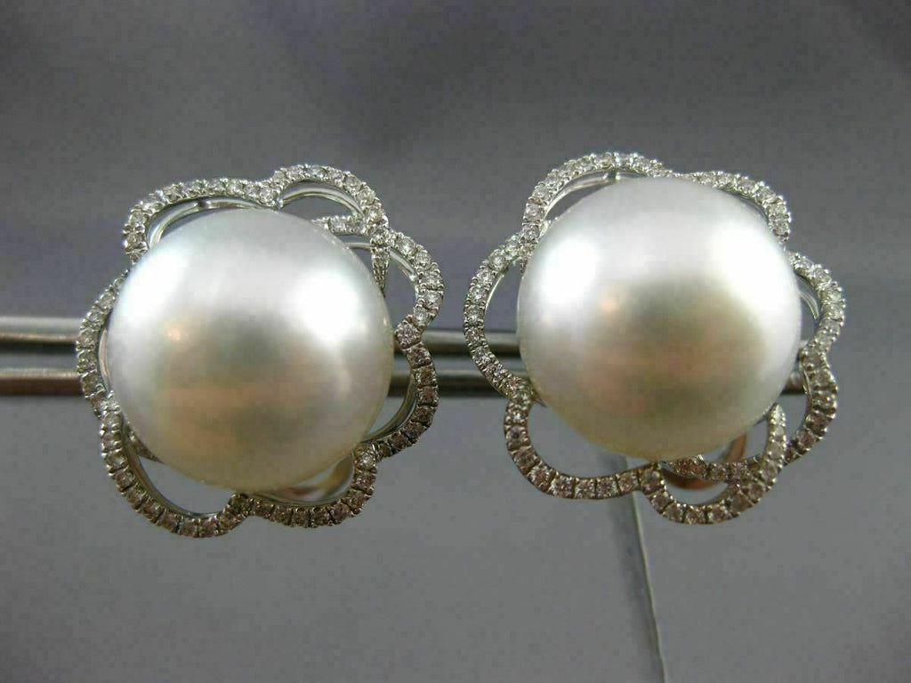 ESESTATE LARGE 18KT WHITE GOLD EARRINGS. 3D CLASSIC FLOWER DESIGN. DIAMONDS ARE F/G COLOR, VSSI CLARITY .60 CARATS. AAA SOUTH SEA PEARLS ARE 13.50MM WIDE. MEASURES 20MM WIDE. COMES ON A 14KT GOLD DIAMOND CUT 16" INCH CHAIN. WRITTEN APPRAISAL AVAILABLE. COMES IN A PRESENTABLE GIFT BOX.