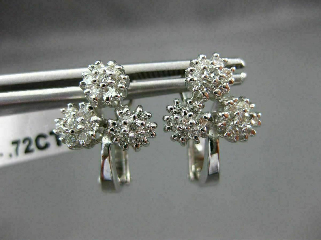 ESTATE LARGE .72CT DIAMOND 14K WHITE GOLD FLOWER CLUSTER CLIP ON EARRINGS #11499