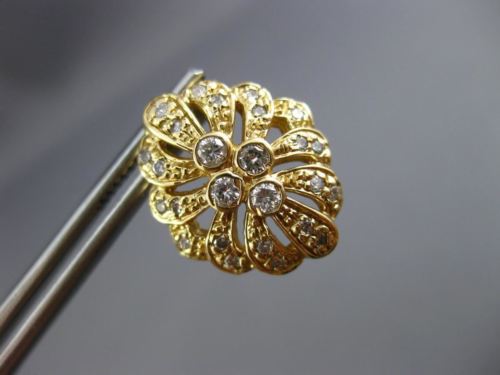 ESTATE LARGE .75CT DIAMOND 14K YELLOW GOLD 3D OPEN FILIGREE FLOWER STUD EARRINGS