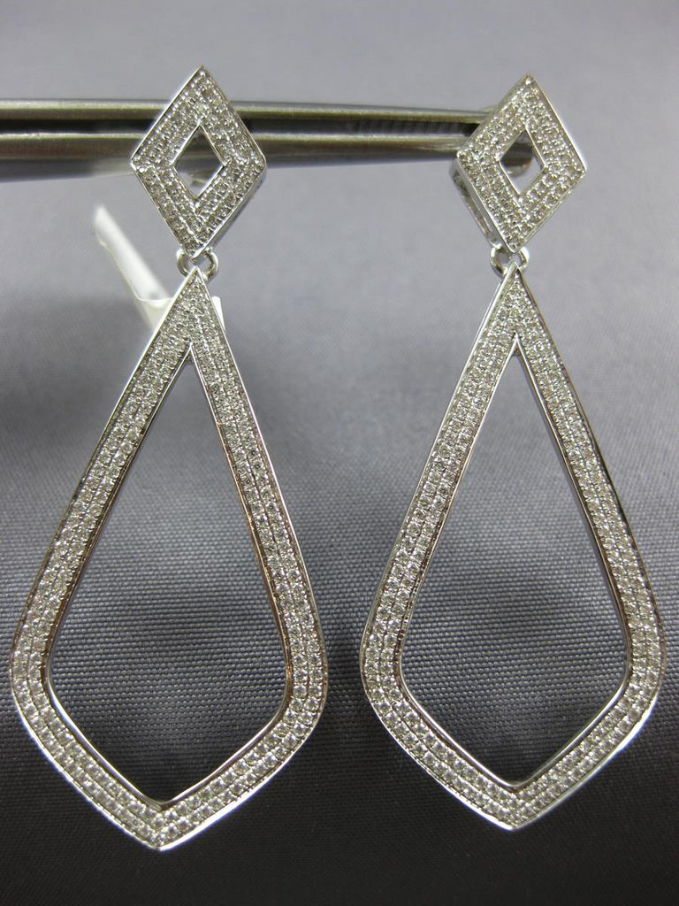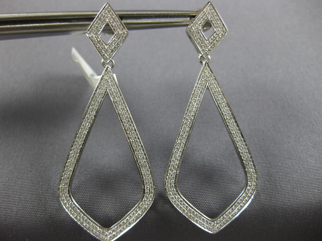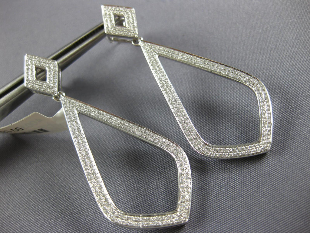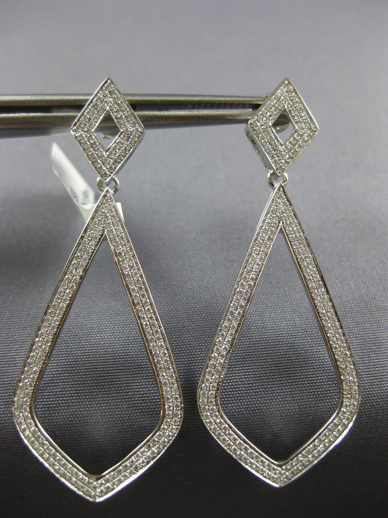 ESTATE LARGE .77CT DIAMOND 18KT WHITE GOLD 3D TEAR DROP HANGING EARRINGS