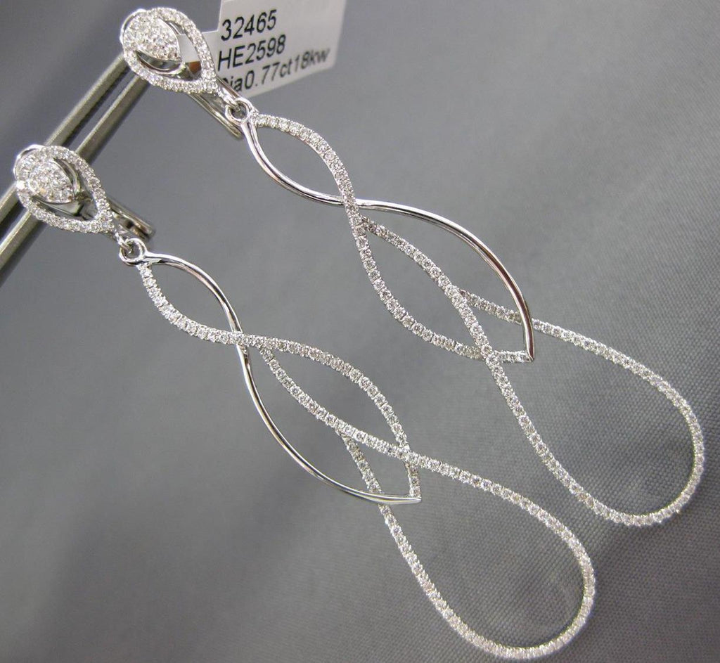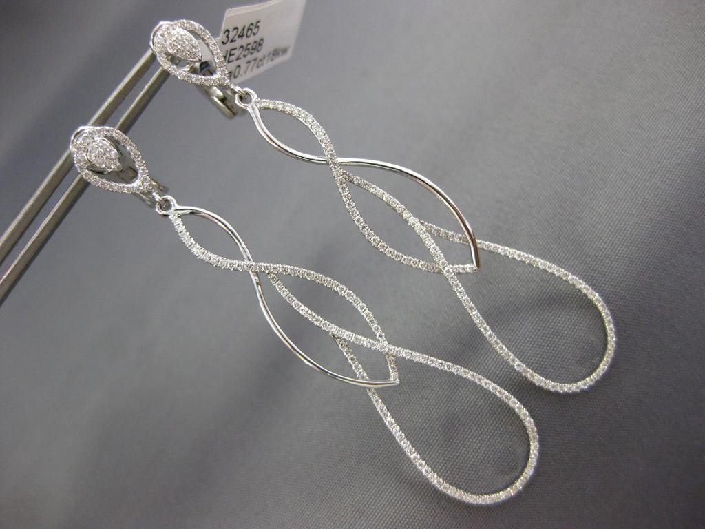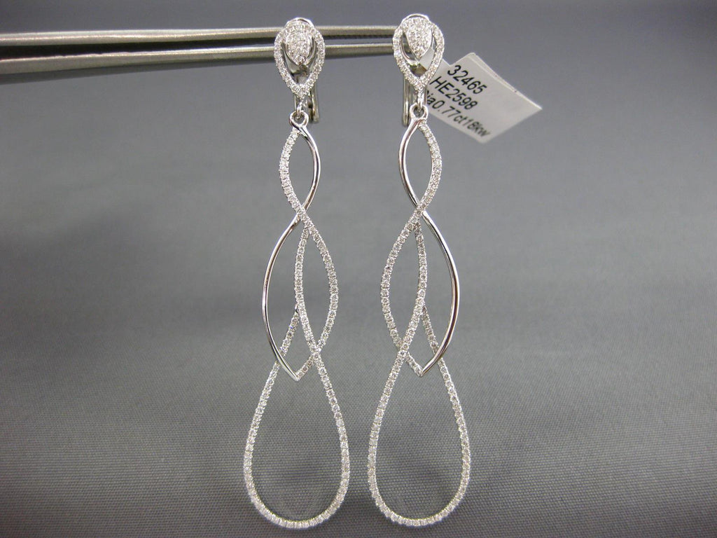 ESTATE LARGE 18KT WHITE GOLD HANGINGEARRINGS. 3D TEAR DROP INFINITYDESIGN. DIAMONDS ARE F/G COLOR, VSSI CLARITY .77CARATS.MEASURES 61mmX 12mm.WRITTEN APPRAISAL AVAILABLE. COMES IN A PRESENTABLE GIFT BOX.
