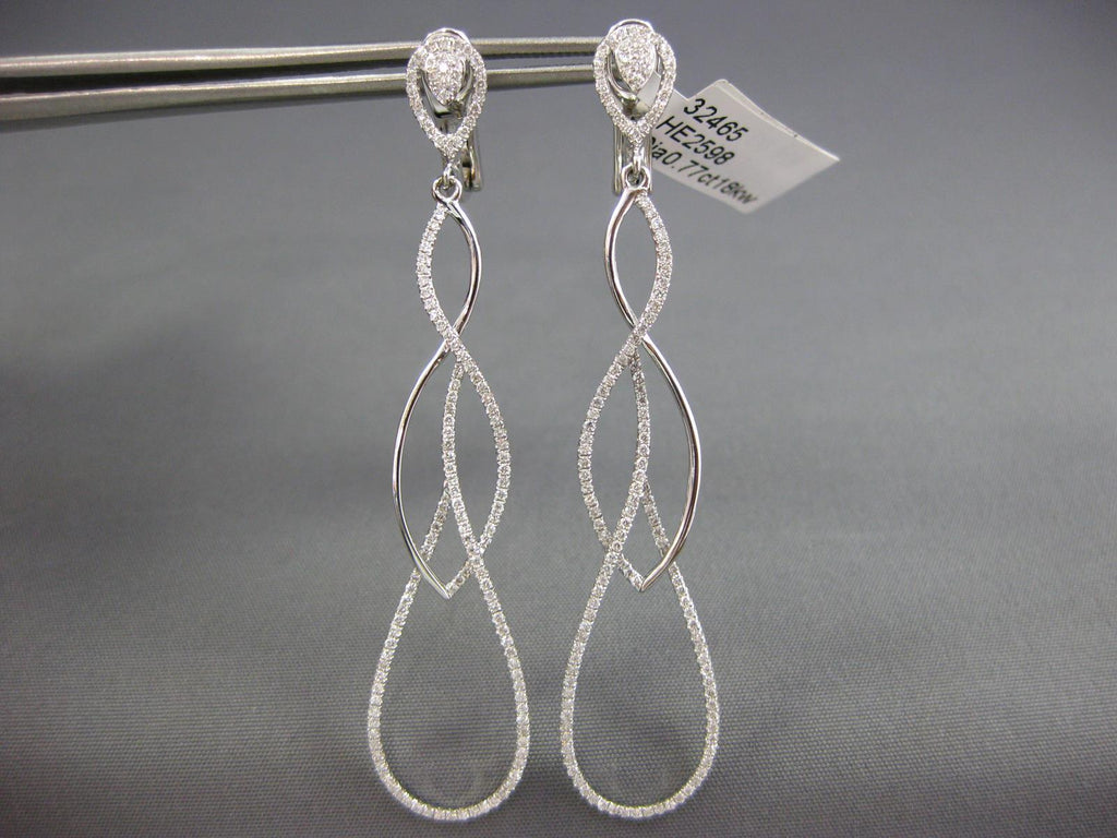 ESTATE LARGE .77CT DIAMOND 18KT WHITE GOLD TEAR DROP INFINITY HANGING EARRINGS