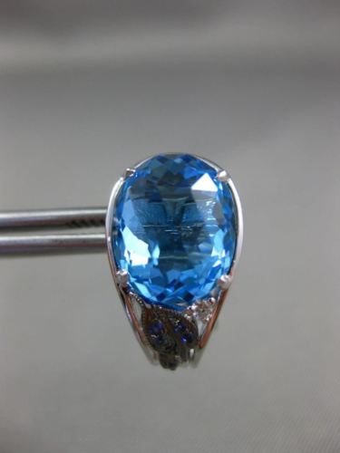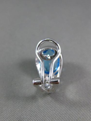 ESTATE LARGE 14KT WHITE GOLD CLIP ON EARRINGS. 3D LEAF FILIGREE DESIGN. DIAMONDS ARE F/G COLOR, VSSI CLARITY .03 CARATS. AAA EXTRA FACET BLUE TOPAZ ARE 8.77 CARATS. MEASURES 17mm X 10mm. WRITTEN APPRAISAL AVAILABLE. COMES IN A PRESENTABLE GIFT BOX.