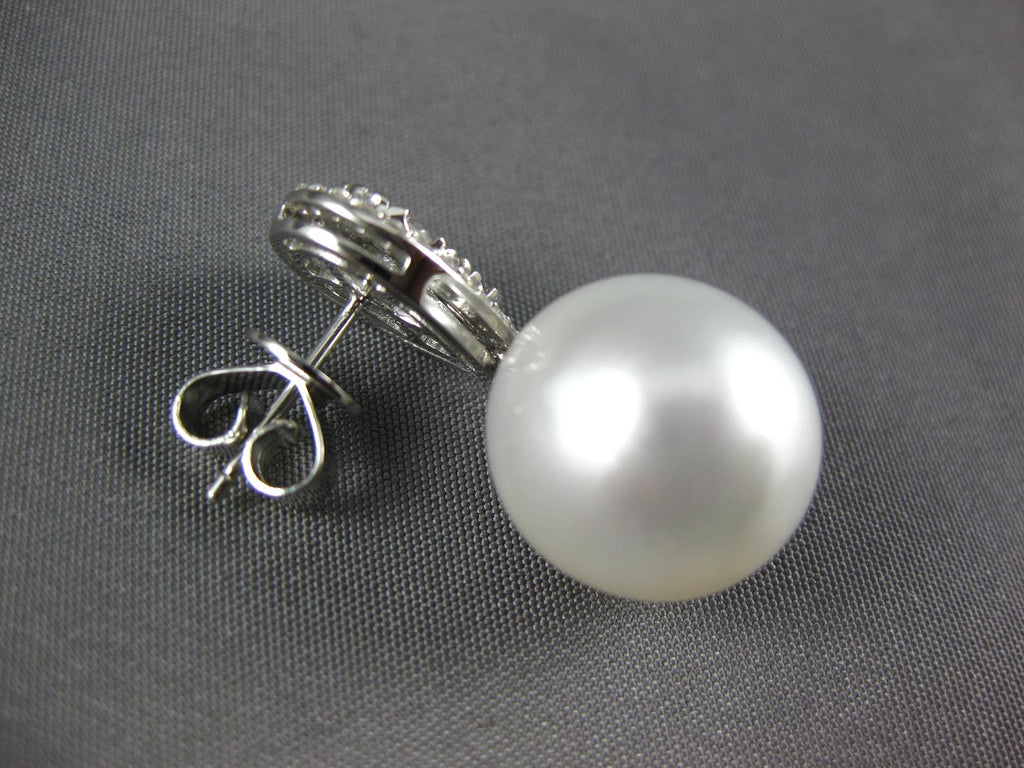 ESTATE LARGE .81CT DIAMOND & AAA SOUTH SEA PEARL 18K WHITE GOLD HANGING EARRINGS