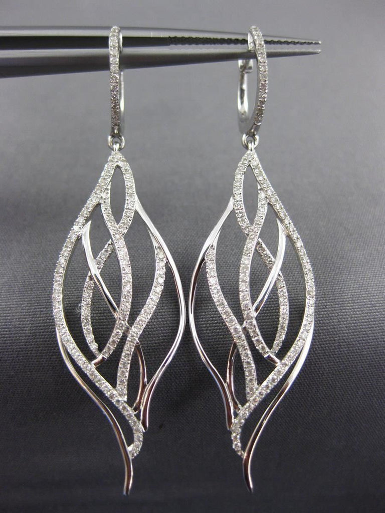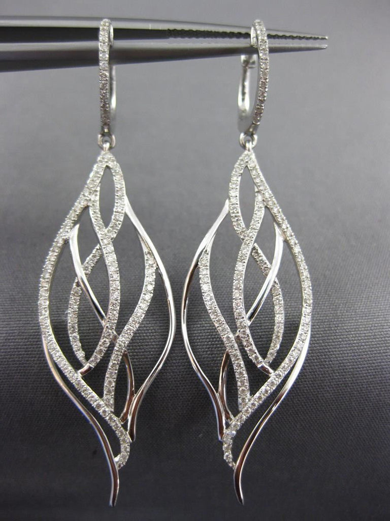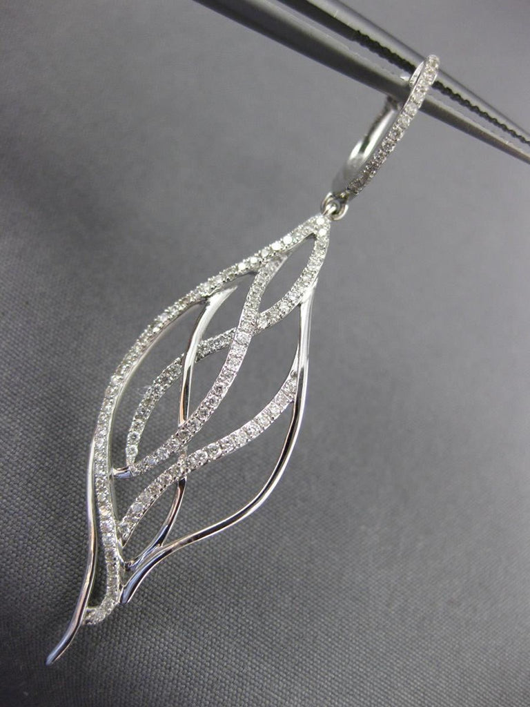 ESTATE LARGE 18KT WHITE GOLD HANGING EARRINGS. 3D CLASSIC LEAF DESIGN. DIAMONDS ARE F/G COLOR, VSSI CLARITY .82 CARATS. MEASURES 56mm X 14mm. WRITTEN APPRAISAL AVAILABLE. COMES IN A PRESENTABLE GIFT BOX.