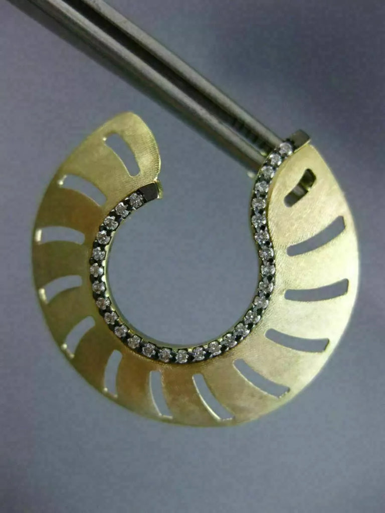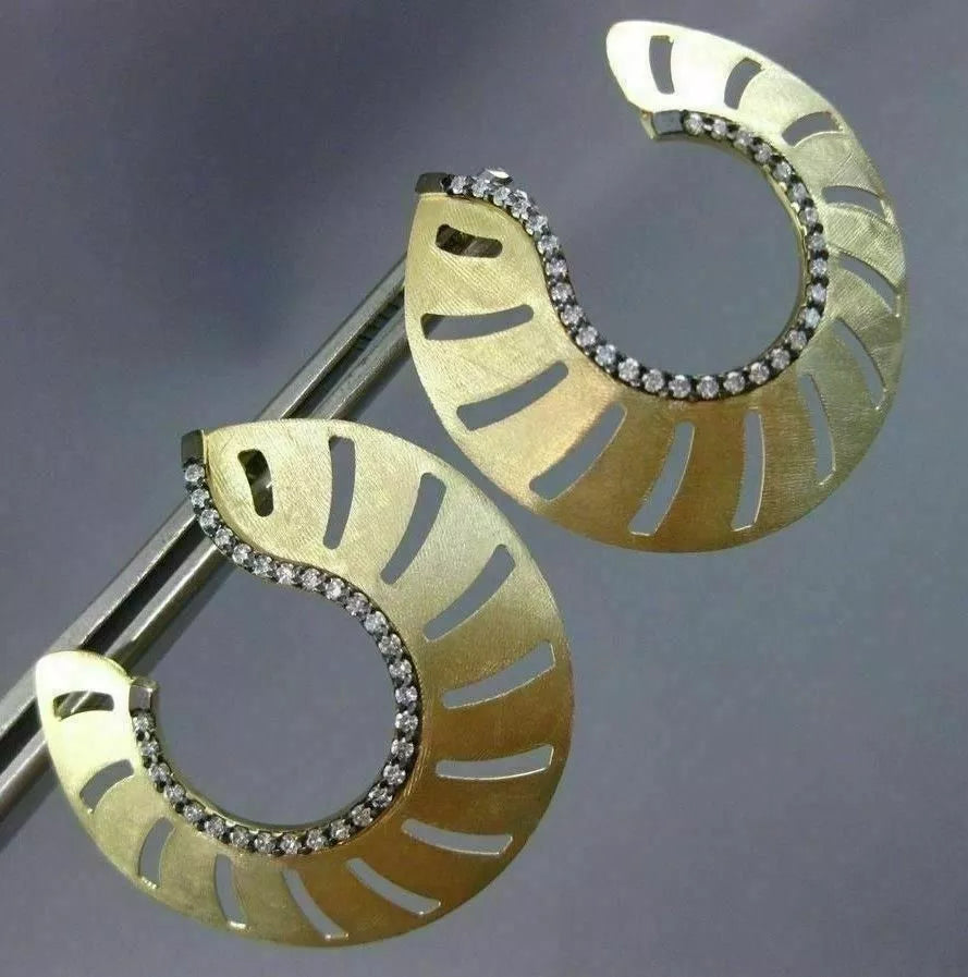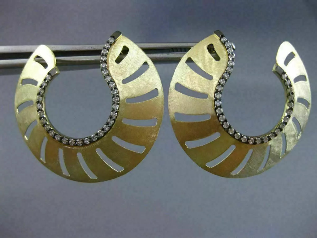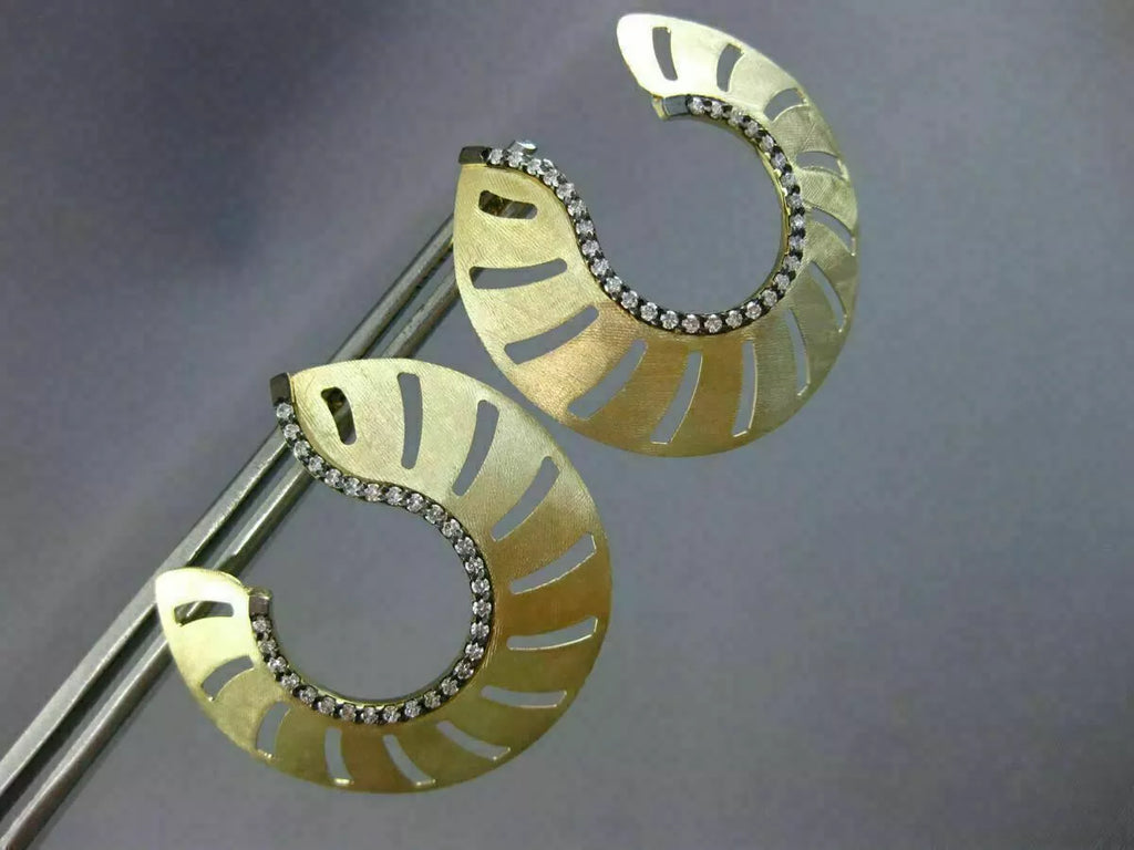 ESTATE LARGE .83CT DIAMOND 14KT YELLOW GOLD ETOILE CIRCULAR OPEN FLAME EARRINGS