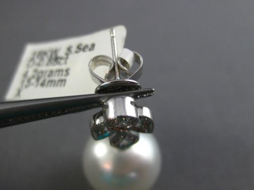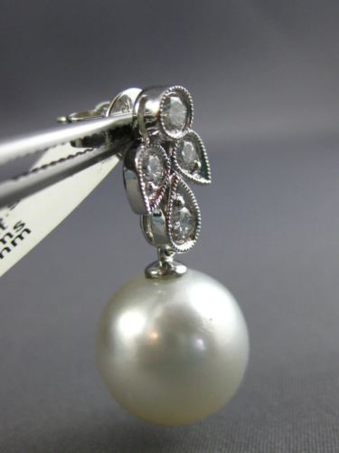 ESTATE LARGE .85CT DIAMOND & AAA SOUTH SEA PEARL 18K WHITE GOLD HANGING EARRINGS