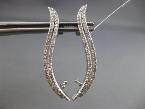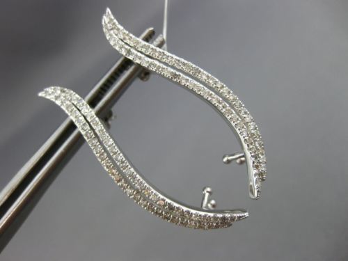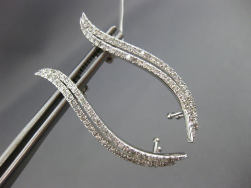 ESTATE LARGE 14KT WHITE GOLD FUN EARRINGS. 3D LEAF DOUBLE WAVE DESIGN. DIAMONDS ARE F/G COLOR, VSSI CLARITY .90 CARATS. MEASURES 34mm X 4mm. WRITTEN APPRAISAL AVAILABLE. COMES IN A PRESENTABLE GIFT BOX.
