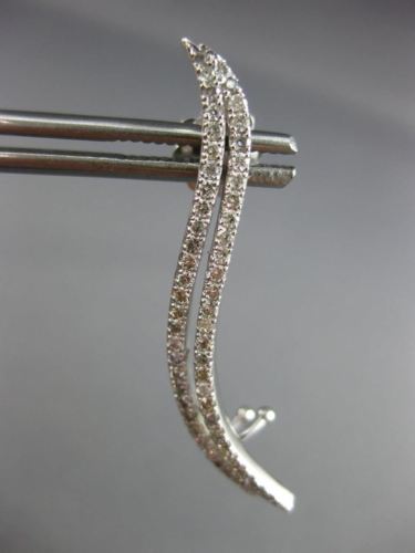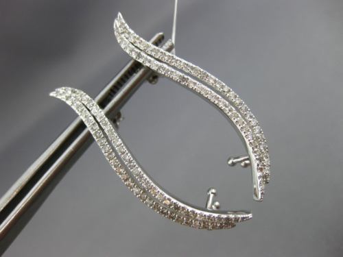ESTATE LARGE .90CT DIAMOND 14KT WHITE GOLD CLASSIC LEAF DOUBLE WAVE FUN EARRINGS