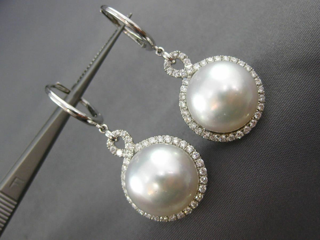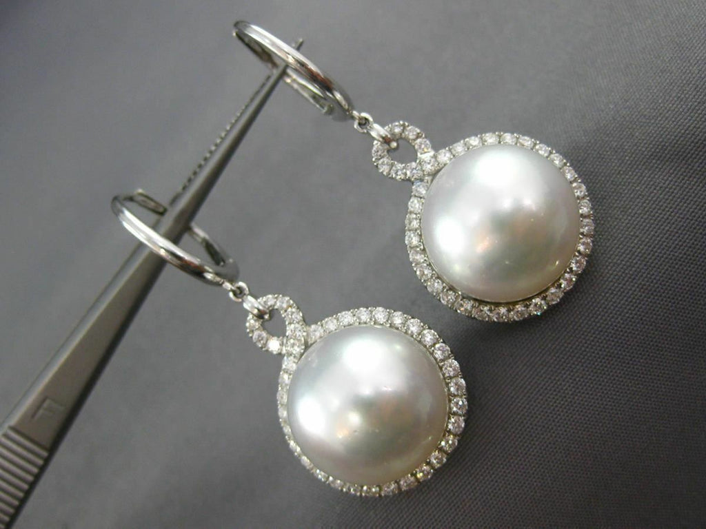 ESTATE LARGE .90CT DIAMOND & AAA SOUTH SEA PEARL 18K WHITE GOLD HANGING EARRINGS