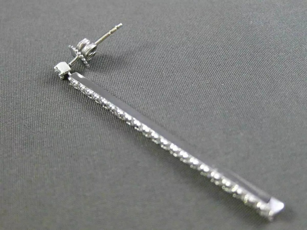 ESTATE LARGE 14KT WHITE GOLD EARRINGS. 3D CLASSIC ELONGATED TENNIS DESIGN. DIAMONDS ARE F/G COLOR, VSSI CLARITY .95 CARATS. MEASURES 48mm X 2mm WIDE. WRITTEN APPRAISAL AVAILABLE. COMES IN A PRESENTABLE GIFT BOX