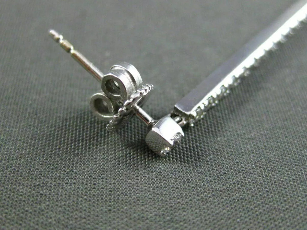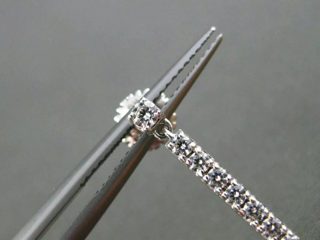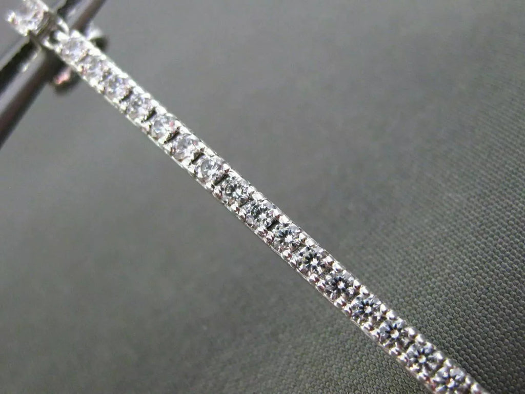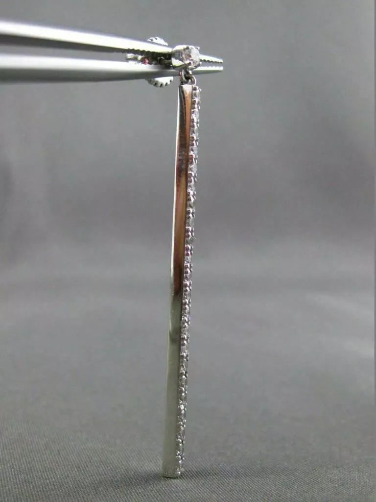 ESTATE LARGE .95CT DIAMOND 14KT WHITE GOLD CLASSIC ELONGATED TENNIS EARRINGS 2mm