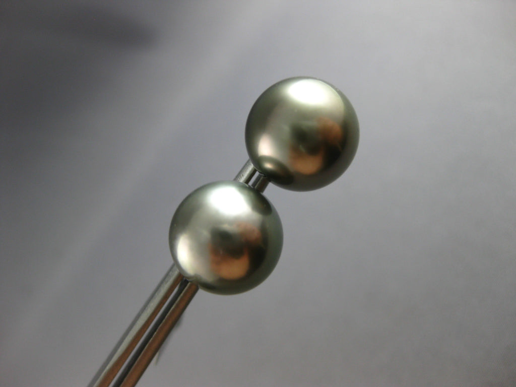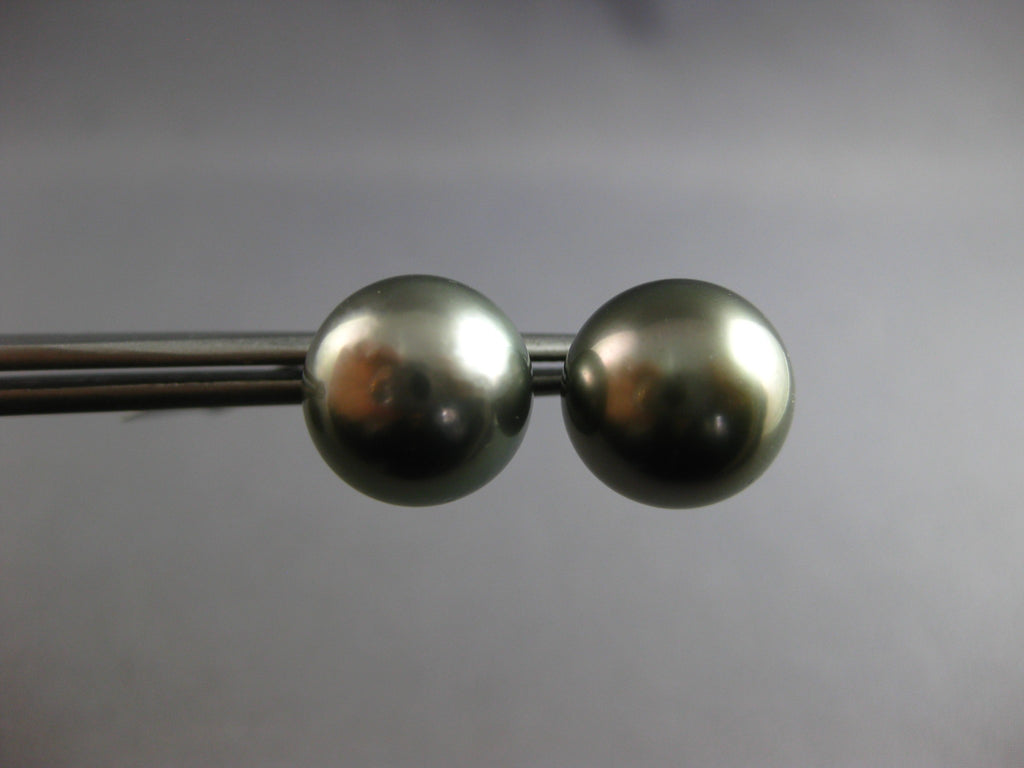 ESTATE LARGE AAA TAHITIAN PEARL 14KT WHITE GOLD 3D 12.5MM CLASSIC STUD EARRINGS