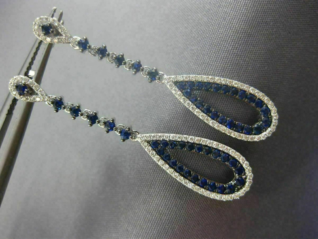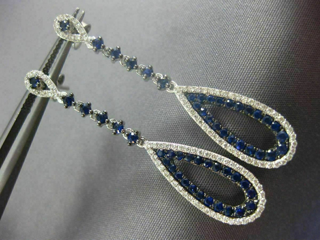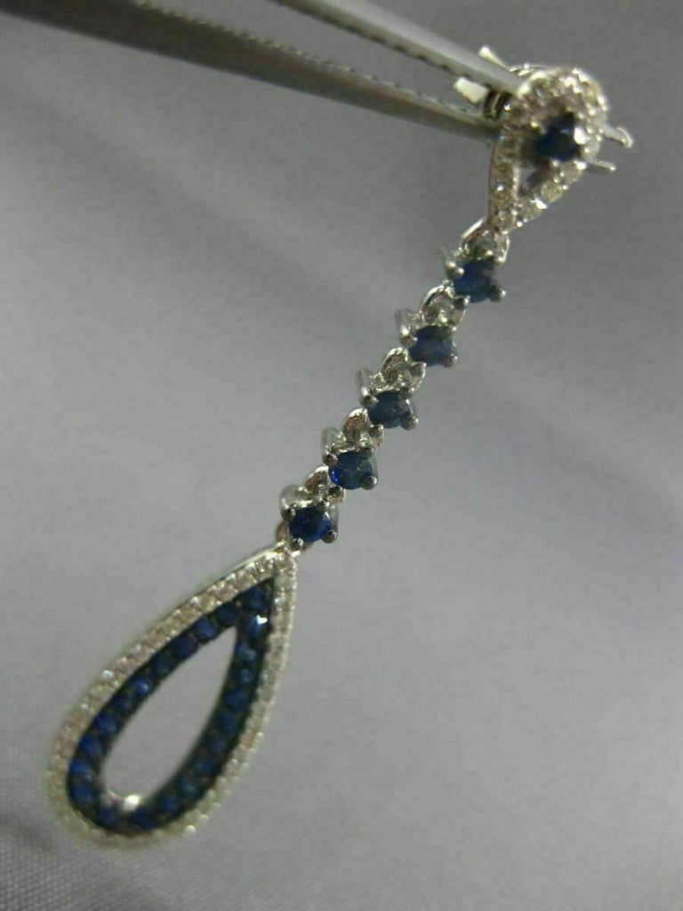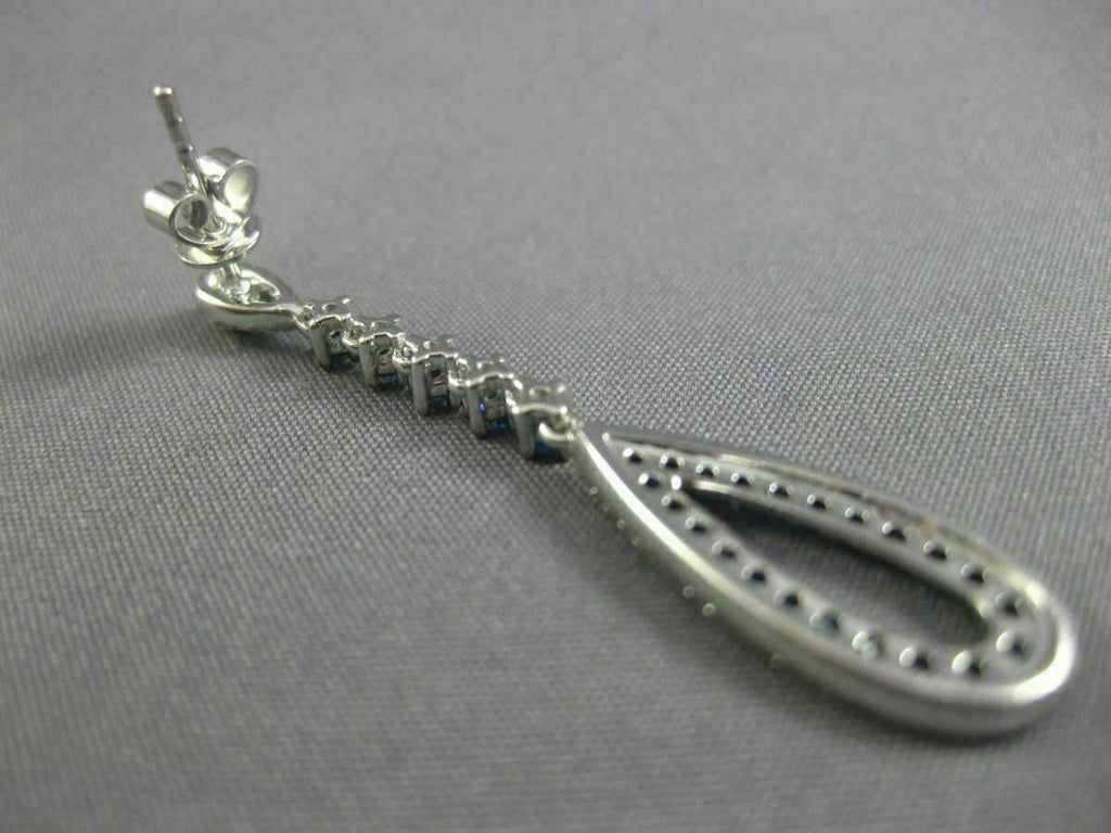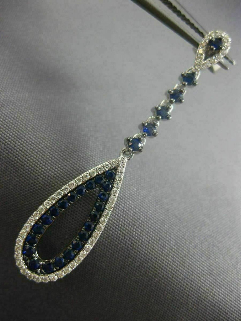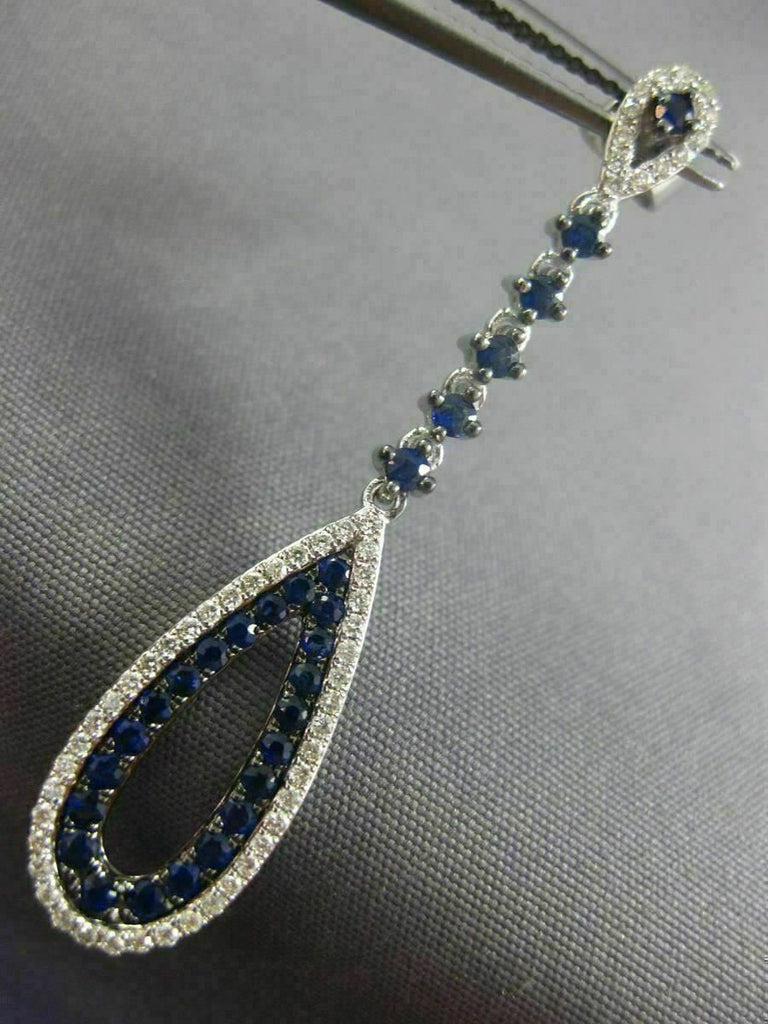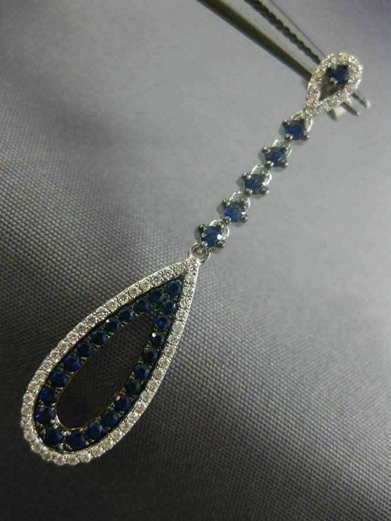 ESTATE LONG 14KT WHITE GOLD HANGING EARRINGS. 3D CLASSIC TEAR DROP DESIGN. DIAMONDS ARE F/G COLOR, VSSI CLARITY .34 CARATS. AAA SAPPHIRES ARE .88 CARATS. MEASURES 40mm X 9mm. WRITTEN APPRAISAL AVAILABLE. COMES IN A PRESENTABLE GIFT BOX.