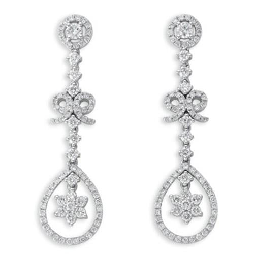 ESTATE LONG 14KT WHITE GOLD HANGING EARRINGS. 3D FLOWER TEAR DROP BOW DESIGN. DIAMONDS ARE F/G COLOR, VSSI CLARITY 1.56 CARATS. WRITTEN APPRAISAL AVAILABLE. COMES IN A PRESENTABLE GIFT BOX.