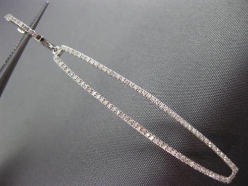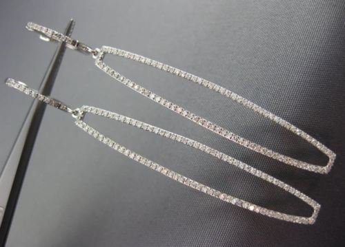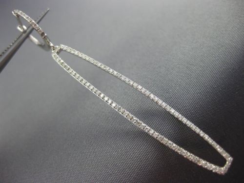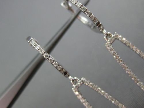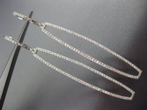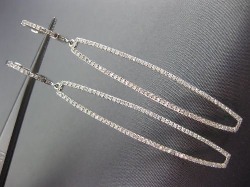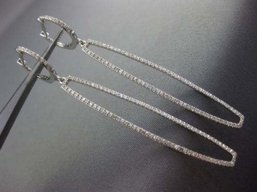 ESTATE LONG 14KT WHITE GOLD HANGING EARRINGS. 3D RECTANGULAR HUGGIE DESIGN. DIAMONDS ARE F/G COLOR, VSSI CLARITY .81 CARATS. MEASURES 59mm X 7mm WIDE. APPRAISAL IS AVAILABLE UPON REQUEST. COMES IN A PRESENTABLE GIFT BOX.