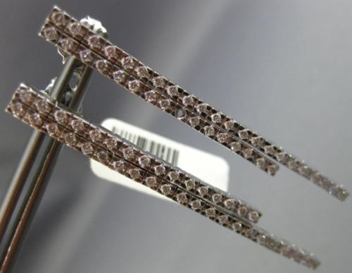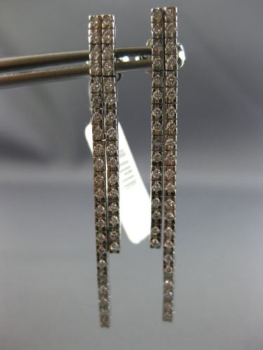 ESTATE LONG 18KT WHITE GOLD HANGING EARRINGS. 3D CLASSIC TWO ROW JOURNEY DESIGN. DIAMONDS ARE F/G COLOR, VSSI CLARITY .90 CARATS. MEASURES 50mm X 3mm. WRITTEN APPRAISAL AVAILABLE. COMES IN A PRESENTABLE GIFT BOX.