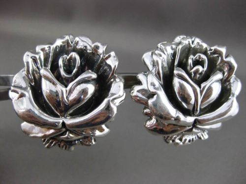 ESTATE MASSIVE 925 SILVER 3D HANDCRAFTED ROSE FLOWER CLIP ON EARRINGS #24070