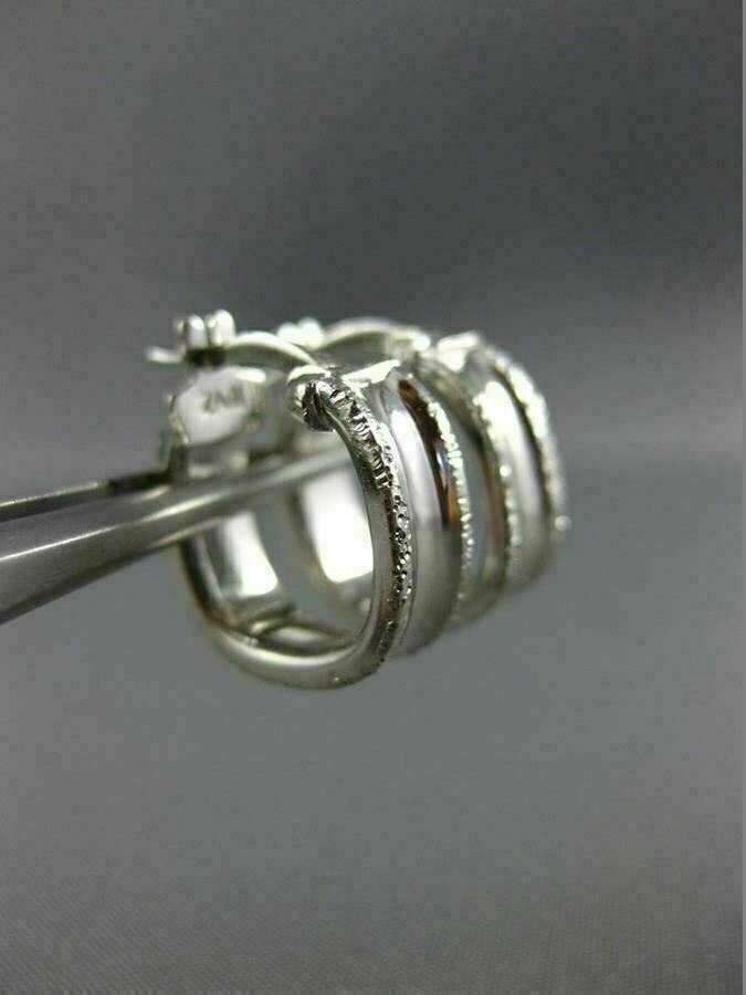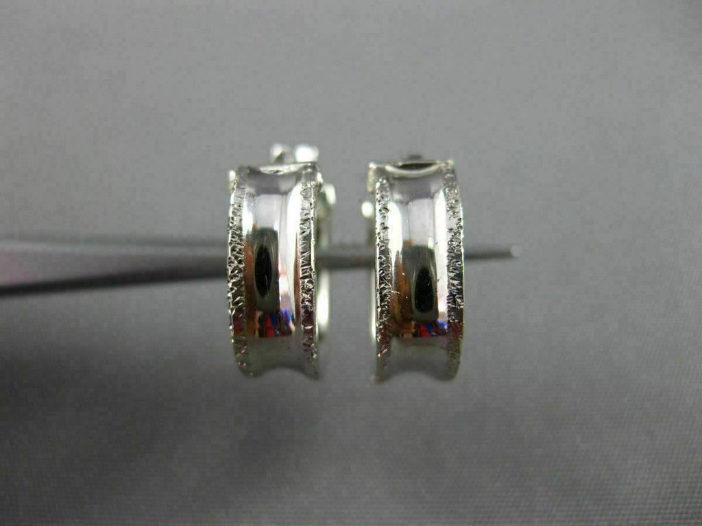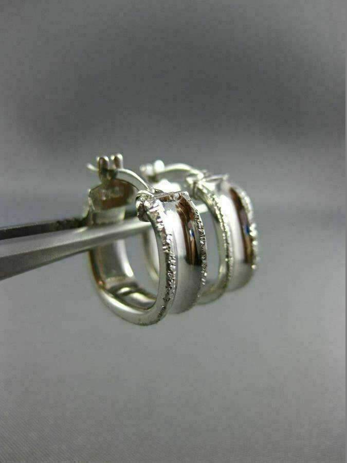 ESTATE SMALL 18KT WHITE GOLD 3D CLASSIC SQUARE DIAMOND CUT HOOP EARRINGS #25583