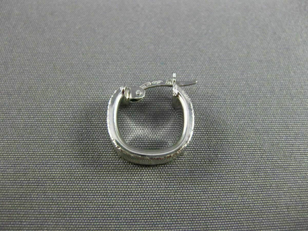 ESTATE SMALL 18KT WHITE GOLD HOOP EARRINGS. 3D CLASSIC SQUARE DIAMOND CUT DESIGN. MEASURES 12mm X 4mm WIDE. WRITTEN APPRAISAL AVAILABLE. COMES IN A PRESENTABLE GIFT BOX. SERIOUS OFFERS CONSIDERED.