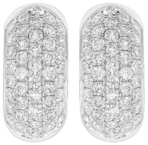 ESTATE WIDE 14KT WHITE GOLD HUGGIE HANGING EARRINGS. 3D CLASSIC PAVE MULTI ROW DESIGN. ROUND DIAMONDS ARE F/G COLOR, VSSI CLARITY 1.23 CARATS.