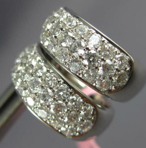 ESTATE WIDE 1.50CT DIAMOND 14KT WHITE GOLD 3 ROW CLASSIC HUGGIE HANGING EARRINGS