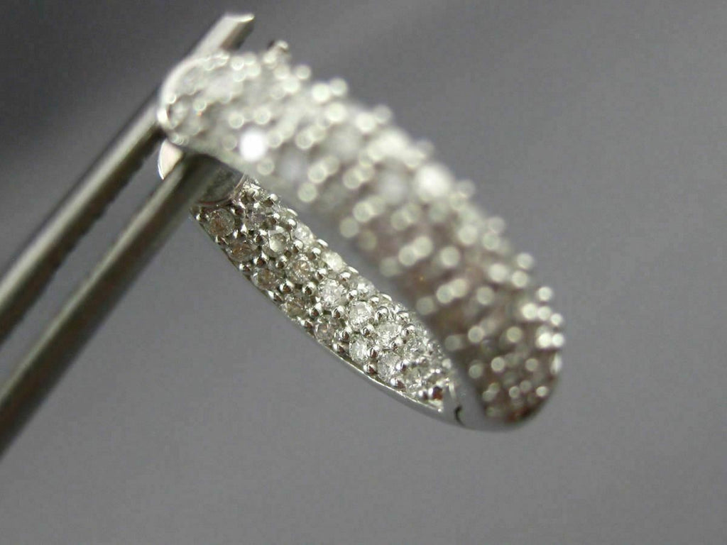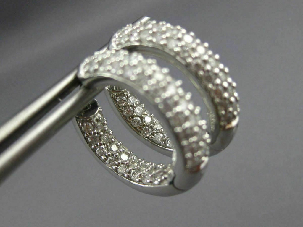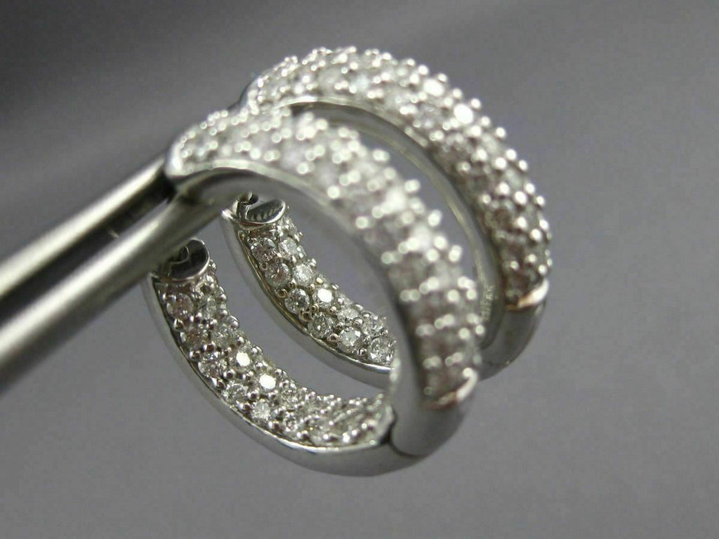 ESTATE WIDE 1.8CT DIAMOND 14K WHITE GOLD DOUBLE SIDED HUGGIE HOOP EARRINGS 18606