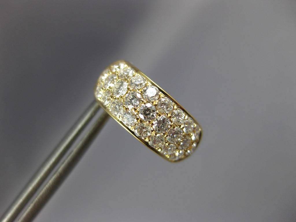 ESTATE WIDE 1.37CT DIAMOND 18K YELLOW GOLD 3D 3 ROW PAVE HUGGIE HANGING EARRINGS
