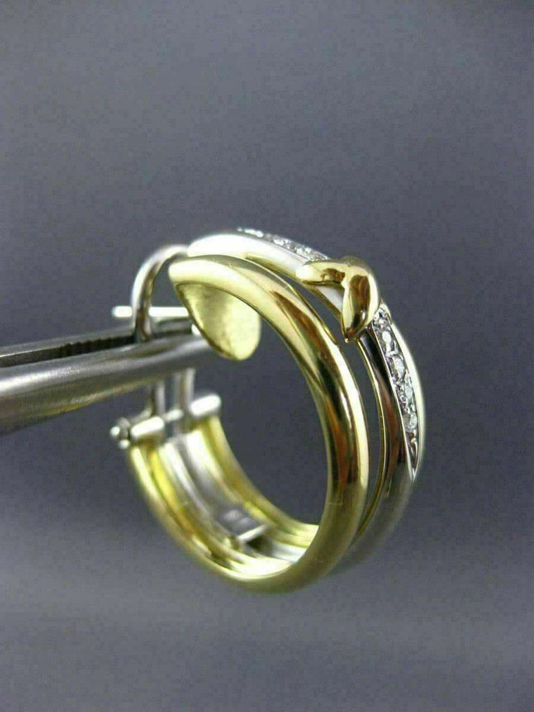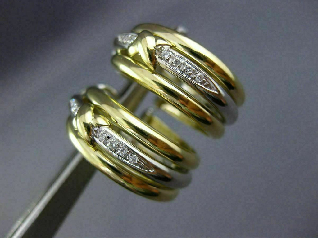 ESTATE WIDE .14CT DIAMOND 18KT WHITE & YELLOW GOLD HOOP CLIP ON EARRINGS #26164
